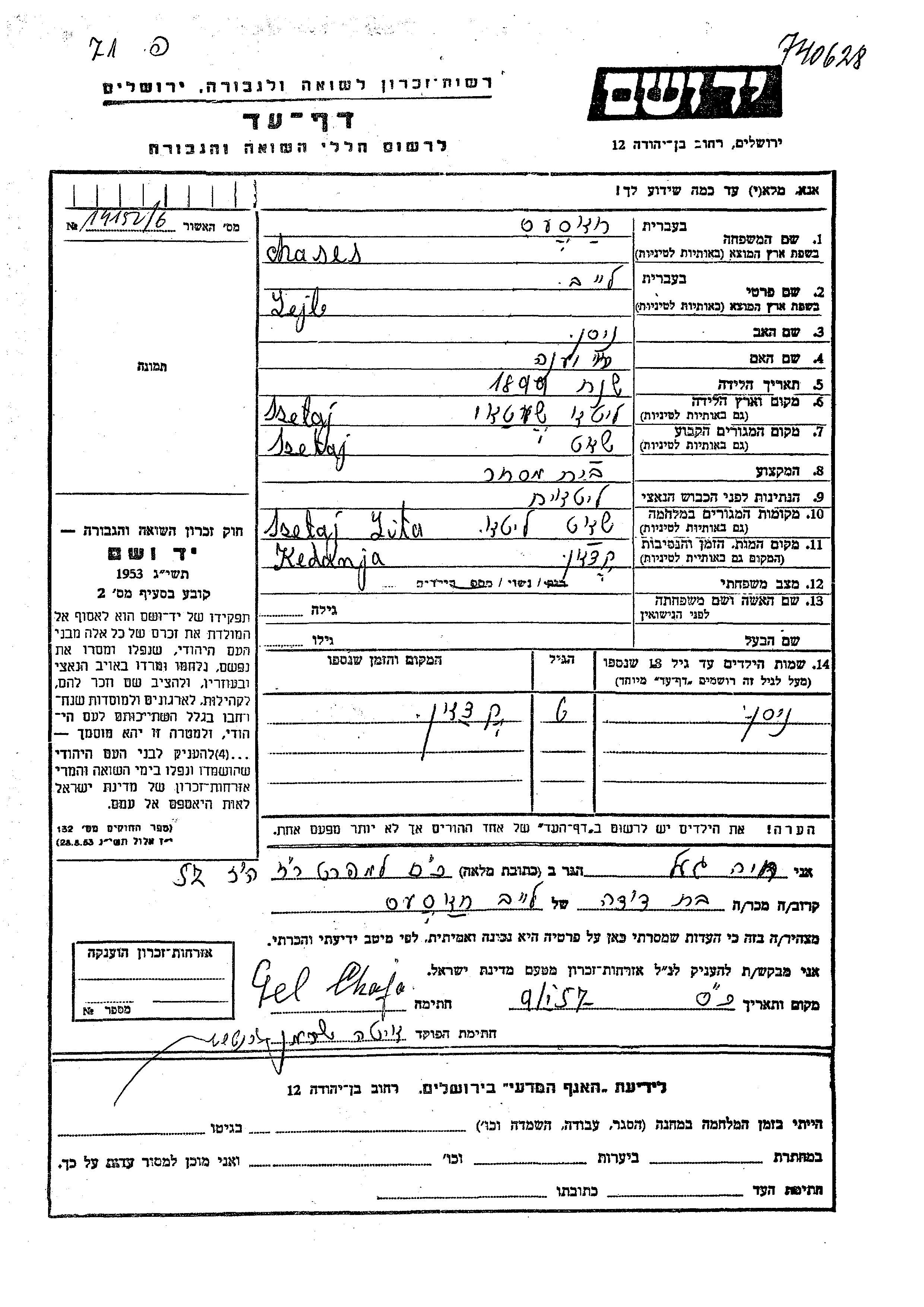 Яд Вашем - Листы свидетельских показаний Мемориального фонда