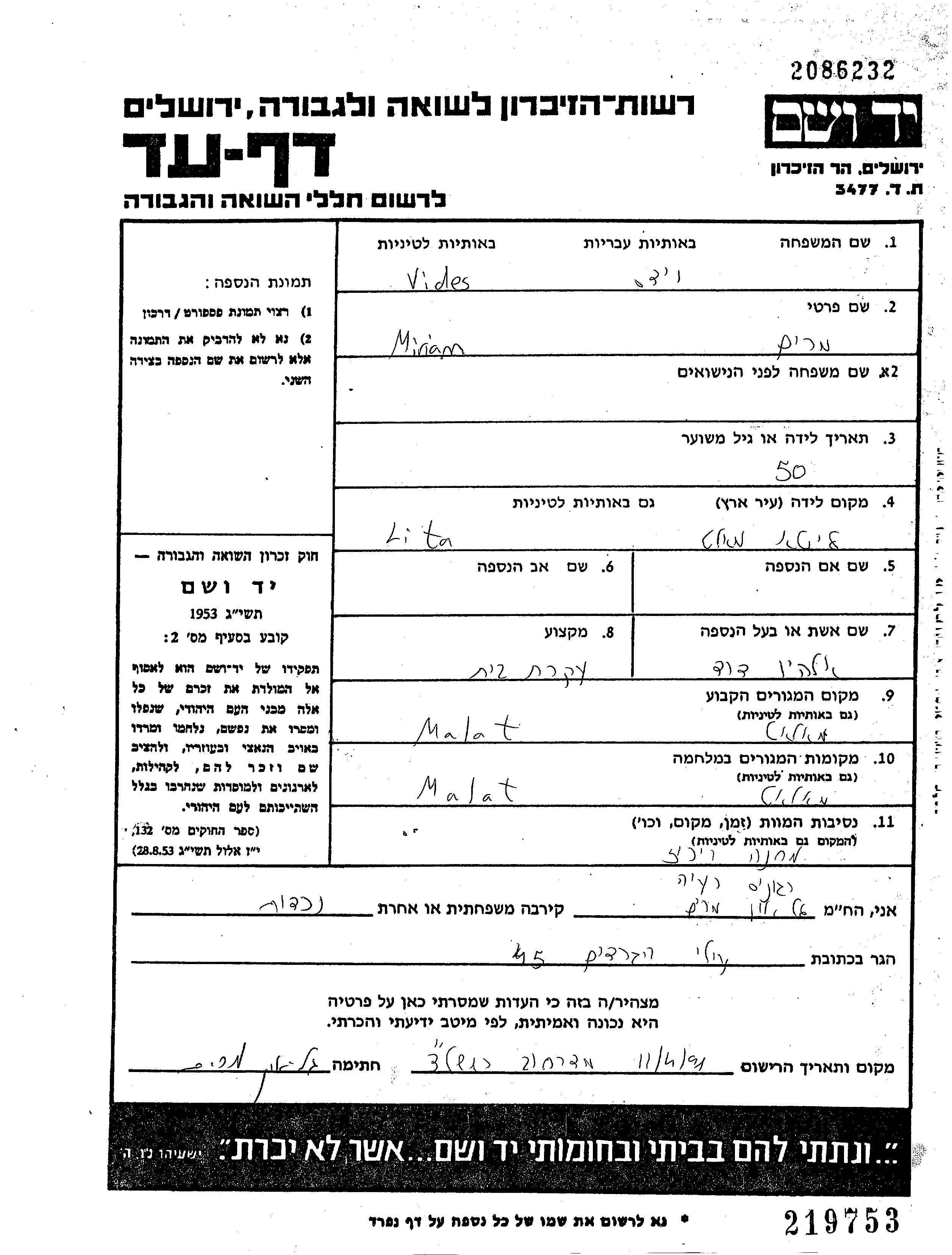 Видес Мирьям Малат, Литва Лист свидетельских показаний
