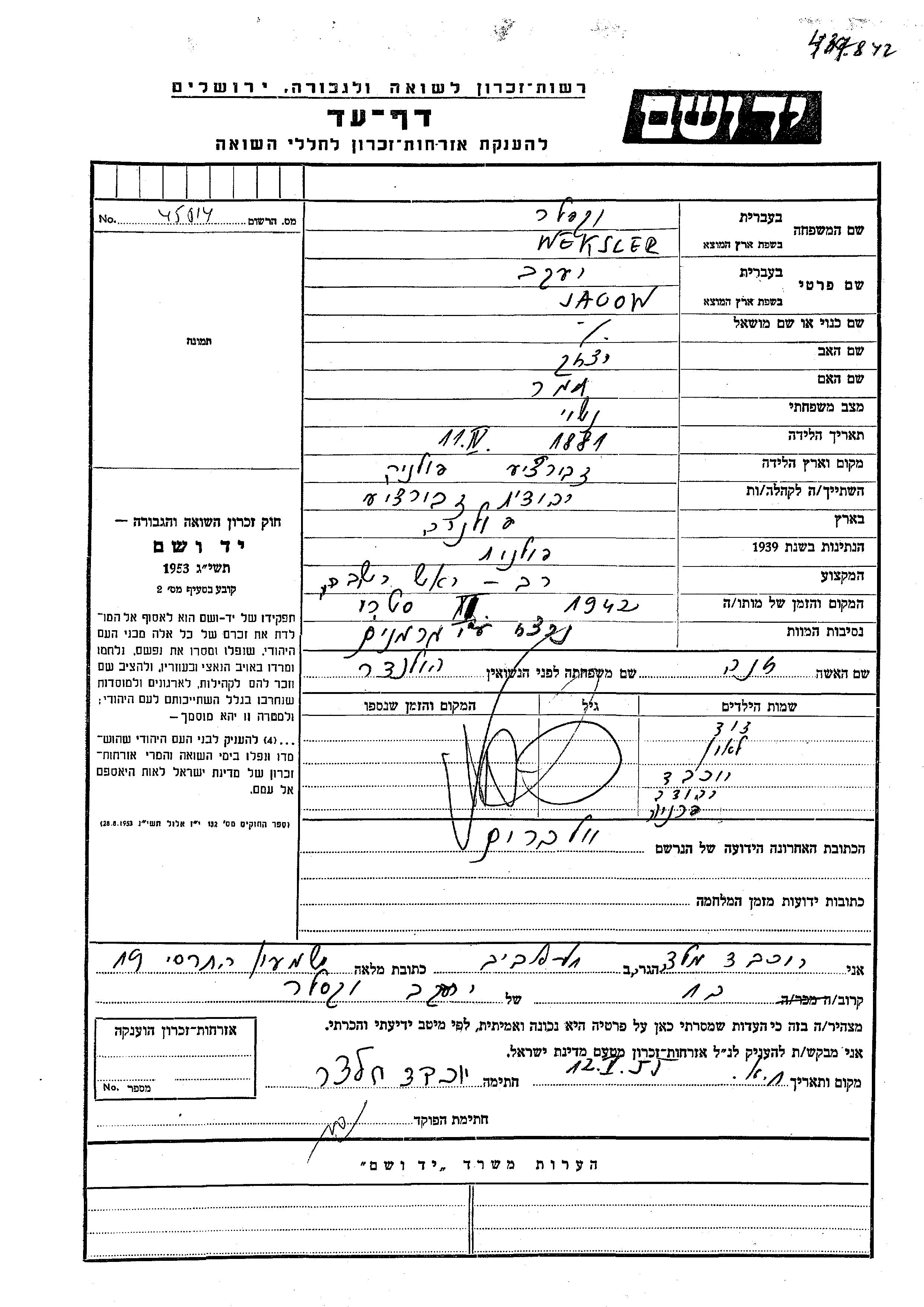 Векслер | Яков Менахем Мендель | 1881 | Краков, Польша | Лист свидетельских показаний |