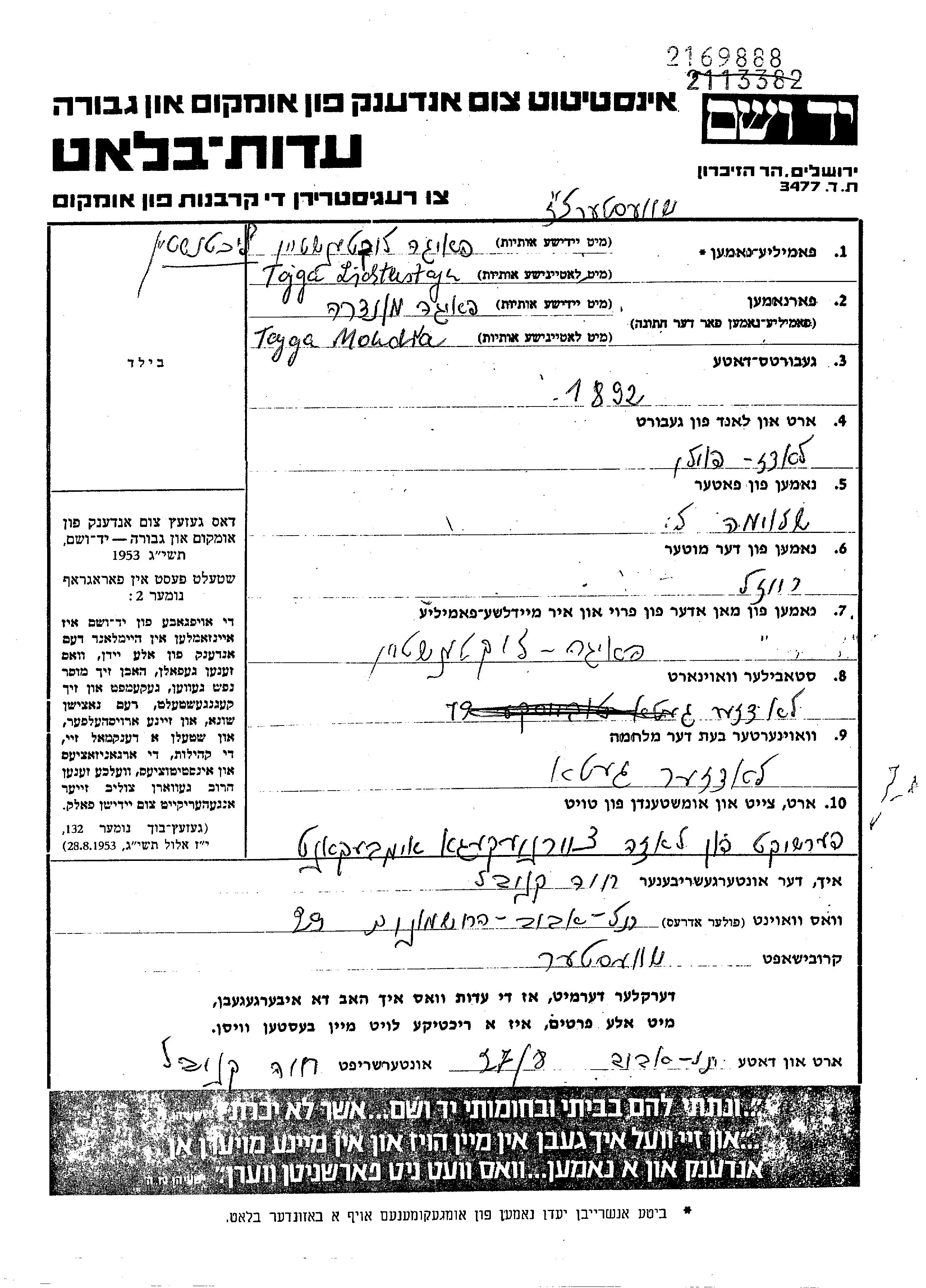 Яд Вашем - Листы свидетельских показаний Мемориального фонда