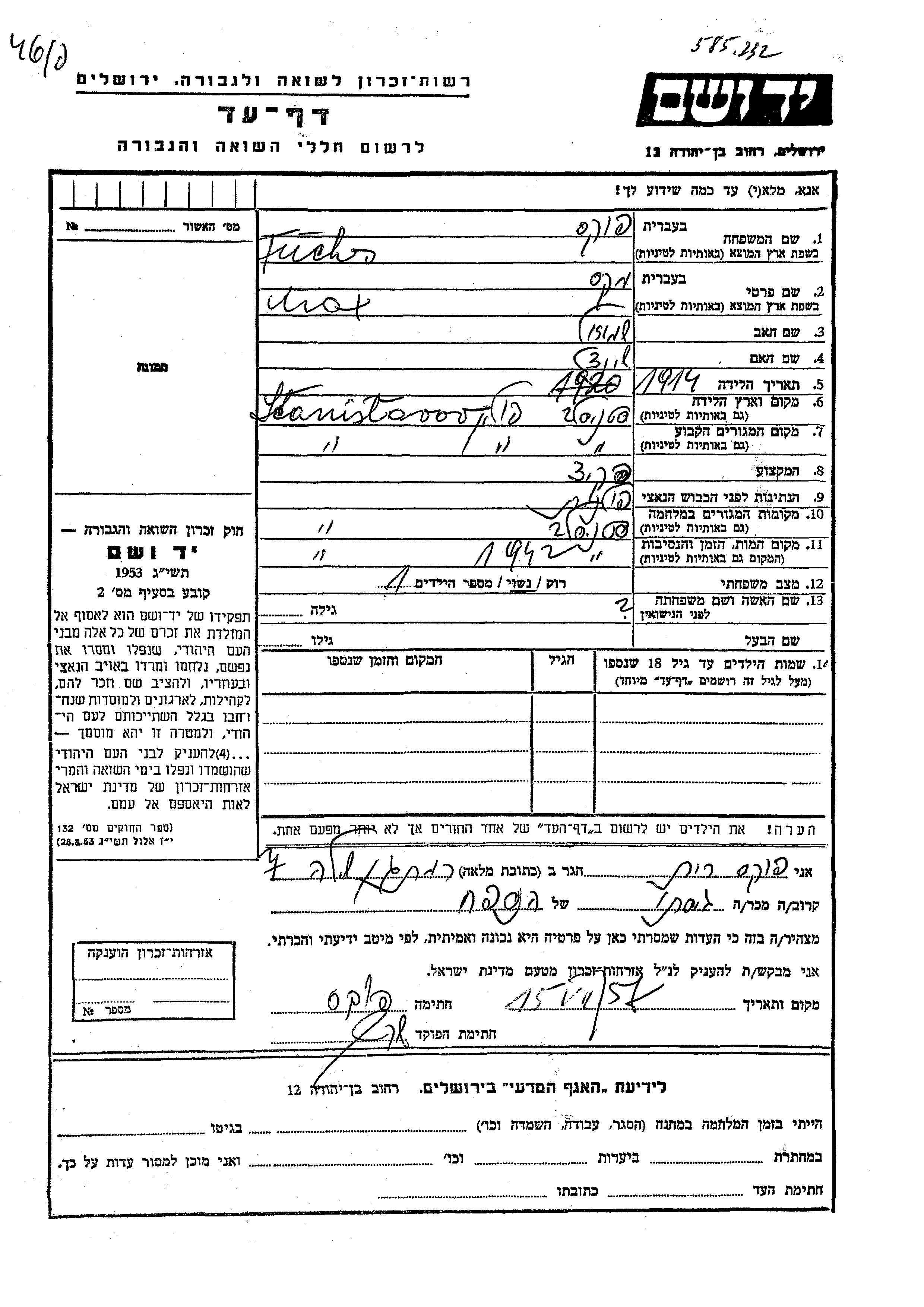 Фухс | Макс | 1906 | Станисловов, Польша | Лист свидетельских показаний |