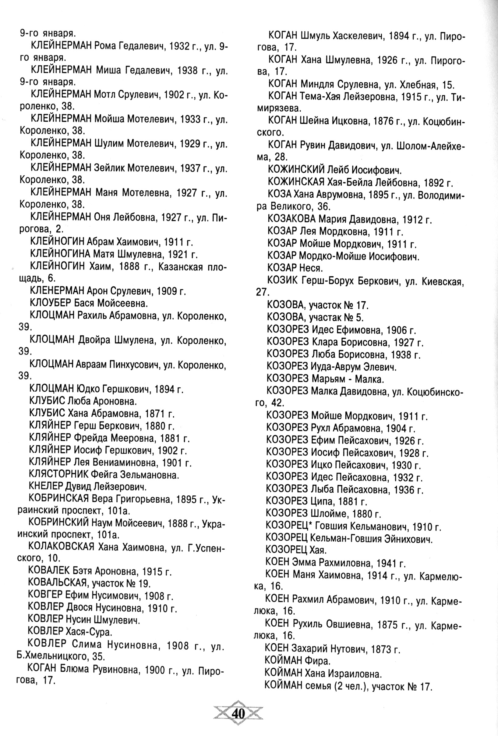 Козорез | Клара | 1927 | Винница, Украина (СССР) | Список преследуемых / пострадавших лиц |