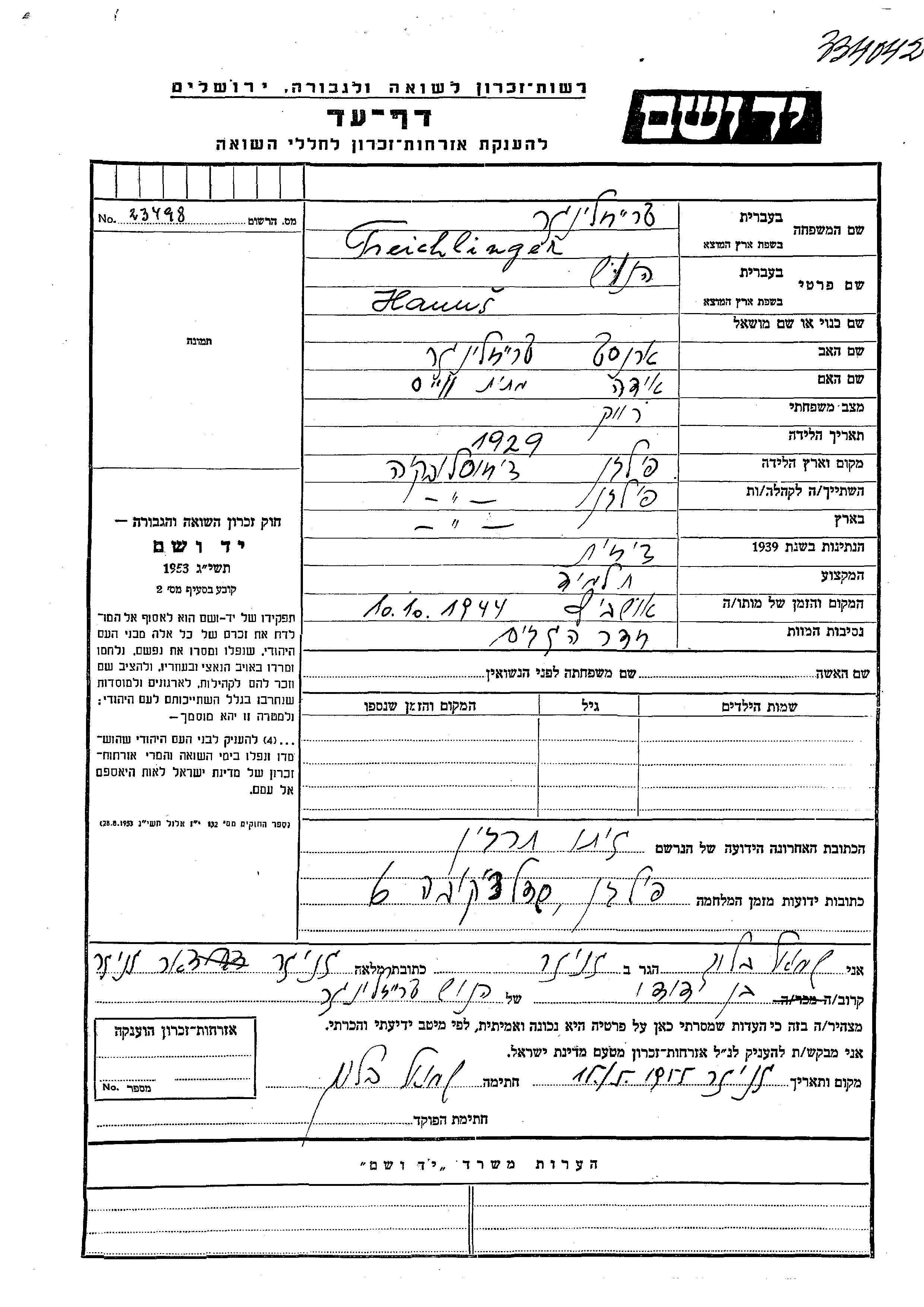 Яд Вашем - Листы свидетельских показаний Мемориального фонда