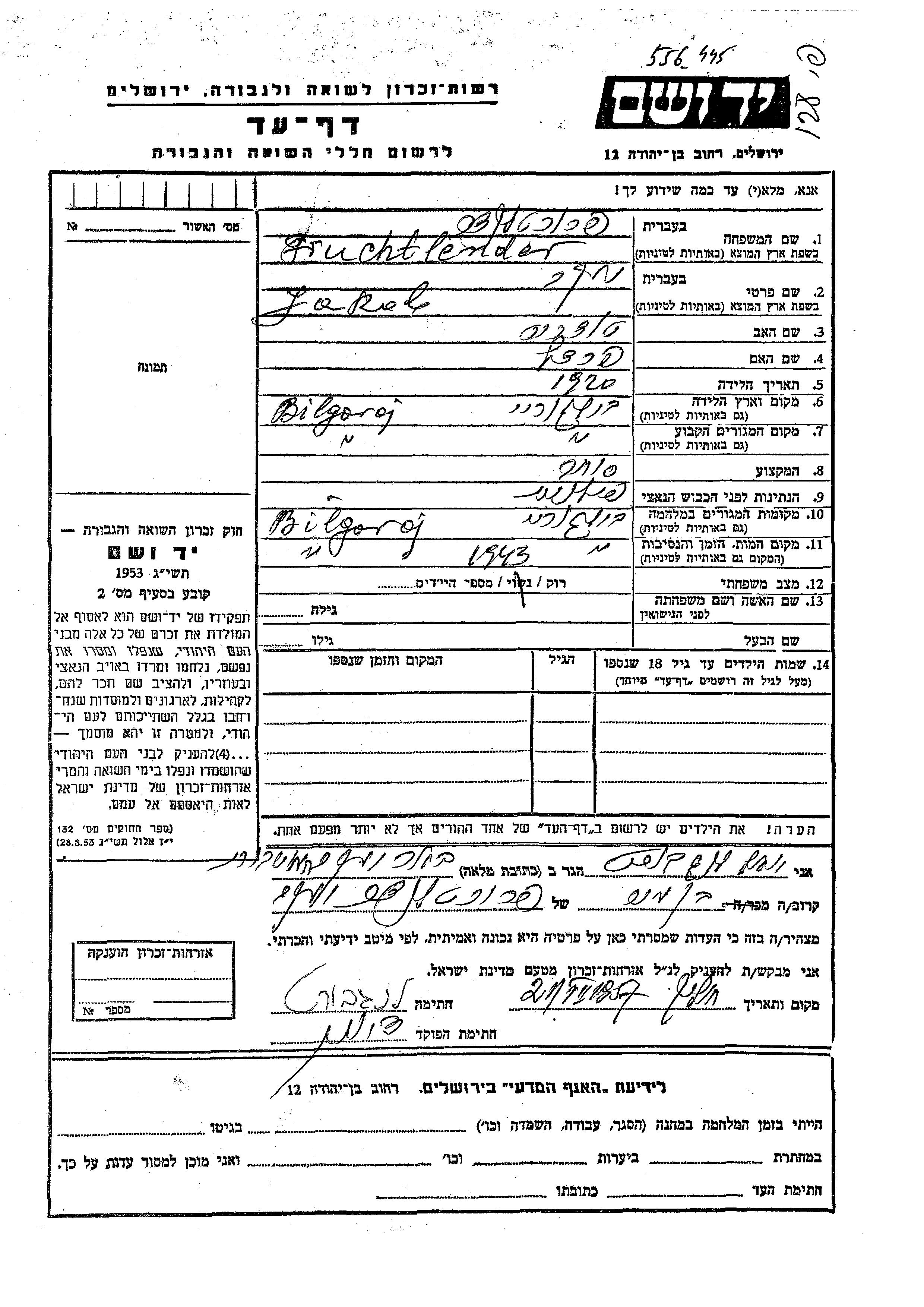 Фрухтлендер | Яаков | 1910 | Билгорай, Польша | Лист свидетельских показаний |