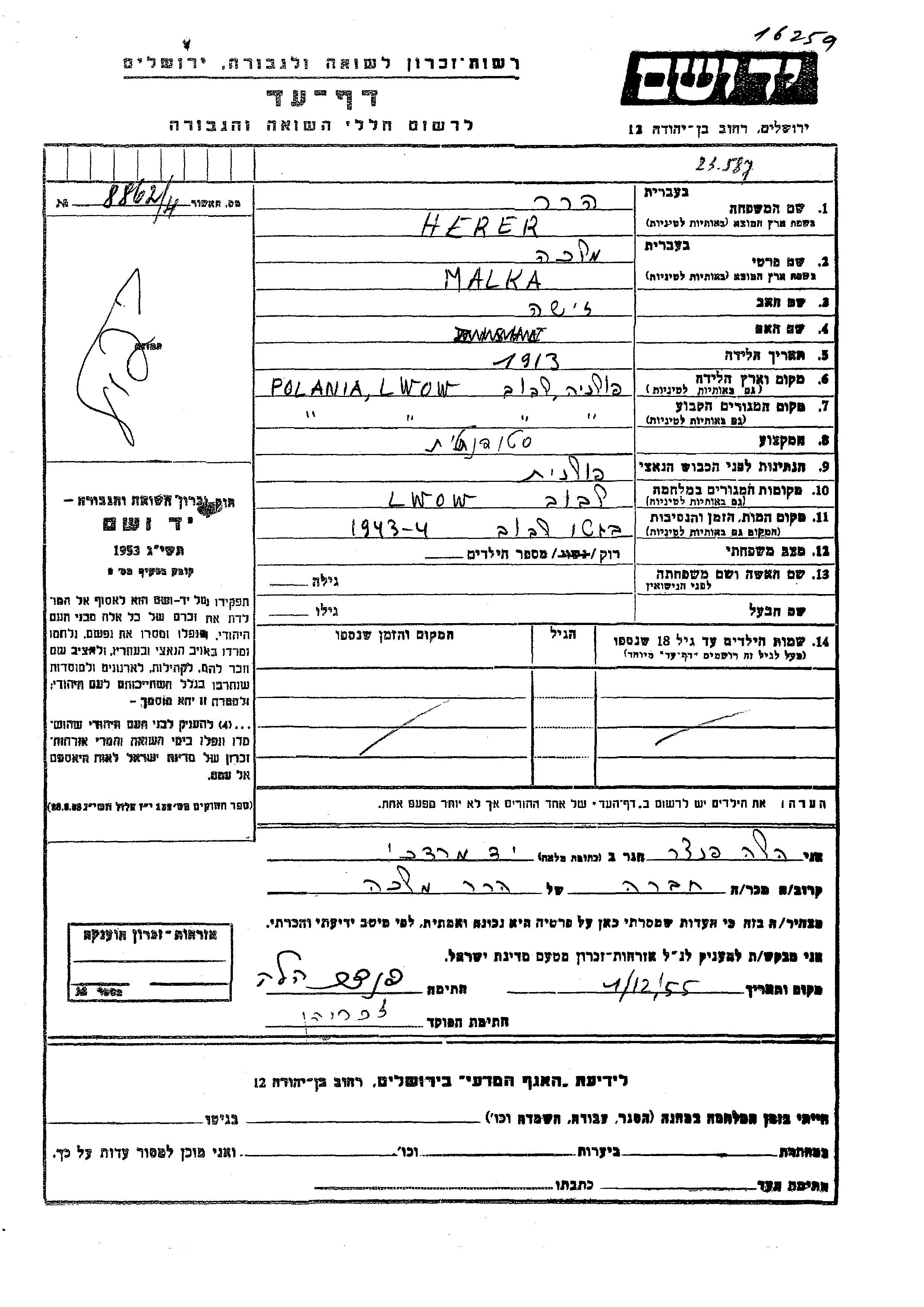 Херер | Малка | 1913 | Львов, Польша | Лист свидетельских показаний |