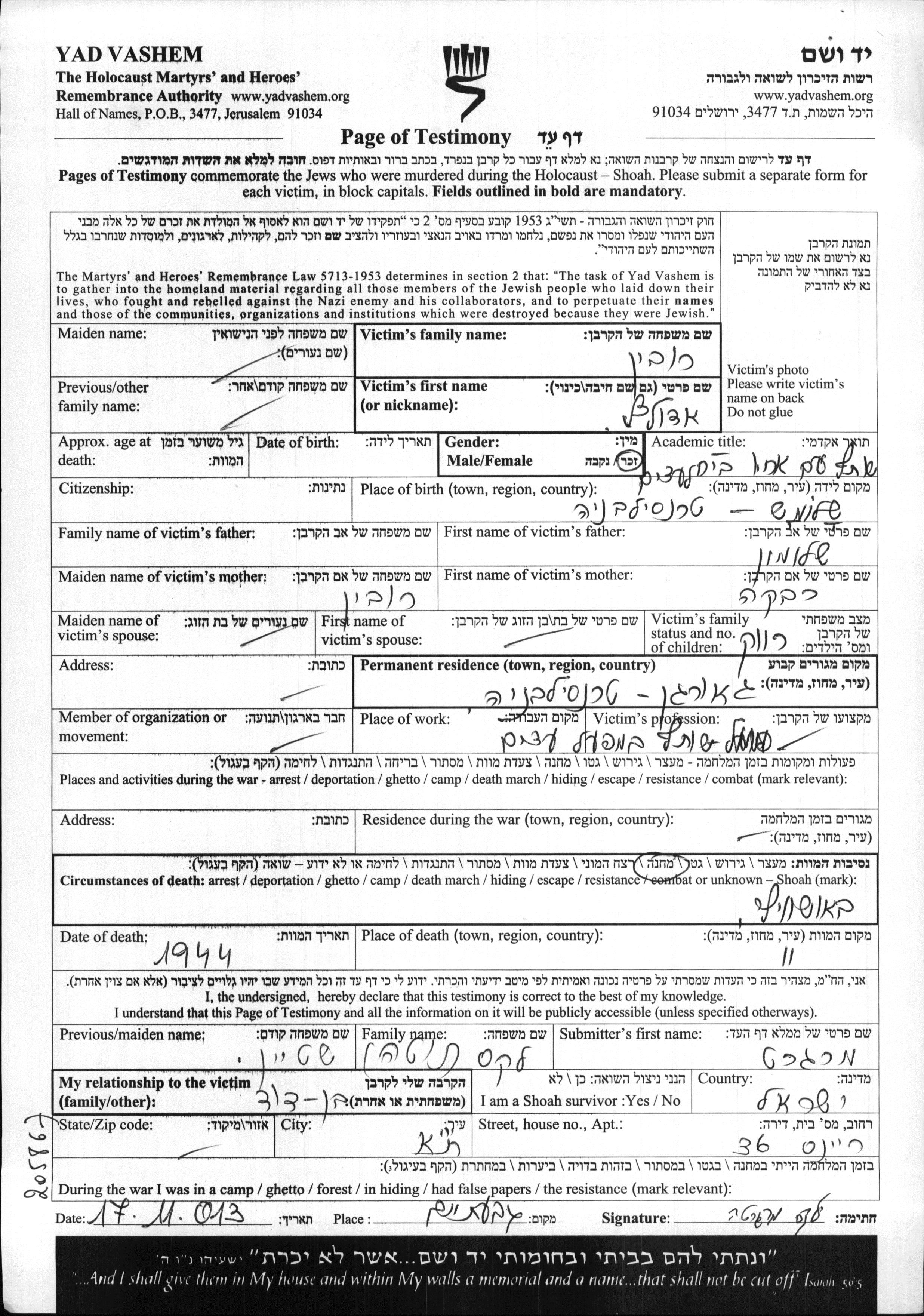 Рубин | Адольф | Джорген, Румыния | Лист свидетельских показаний | |