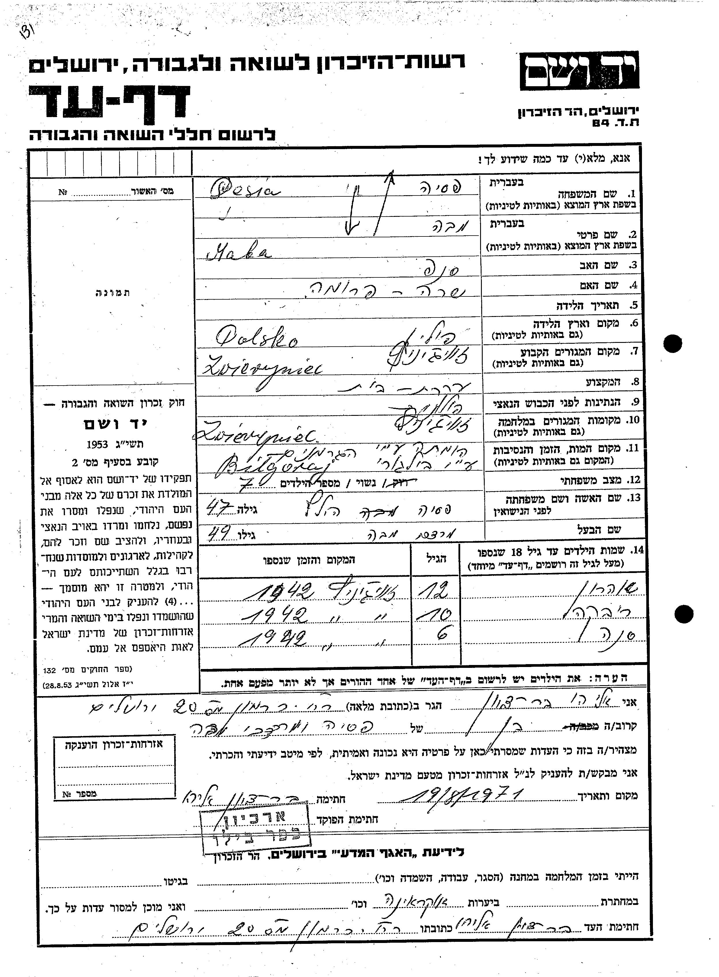 Яд Вашем - Листы свидетельских показаний Мемориального фонда