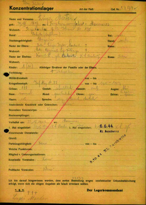 Мартон Лугер. Рабочий / рабочая. Место жительства до войны: Тисакарачоньфальва, Румыния.