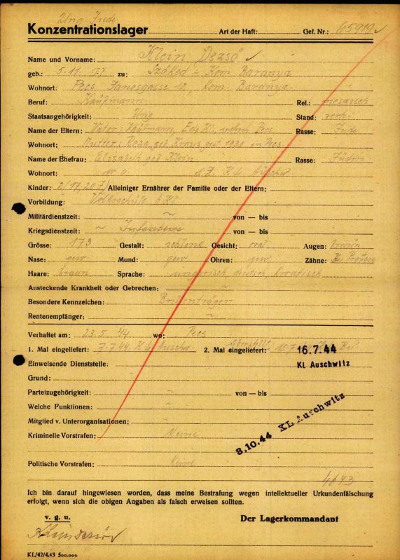 | Клейн | Дежо | 1897 | Печ, Венгрия | Лист свидетельских показаний |