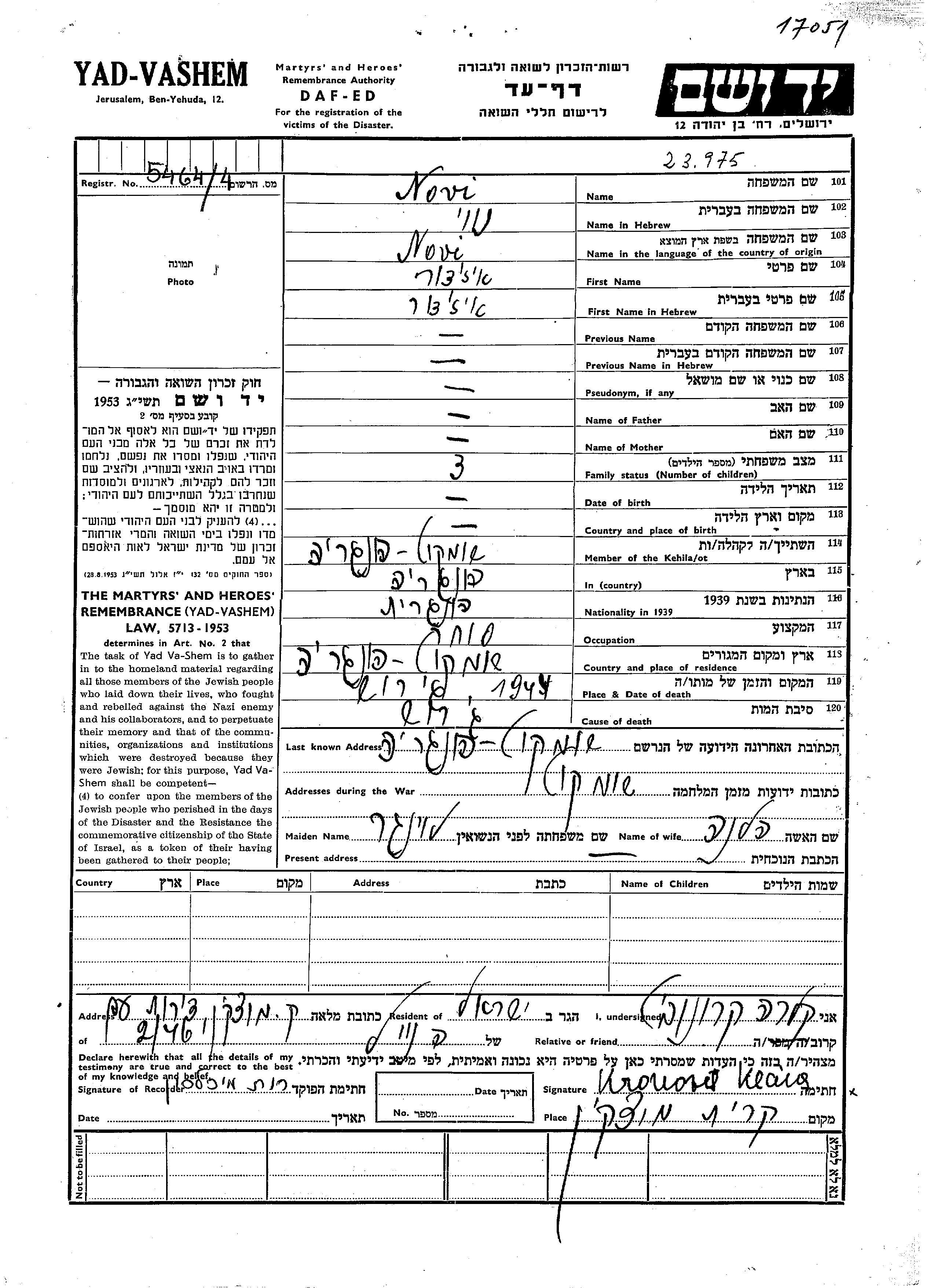 Яд Вашем - Листы свидетельских показаний Мемориального фонда