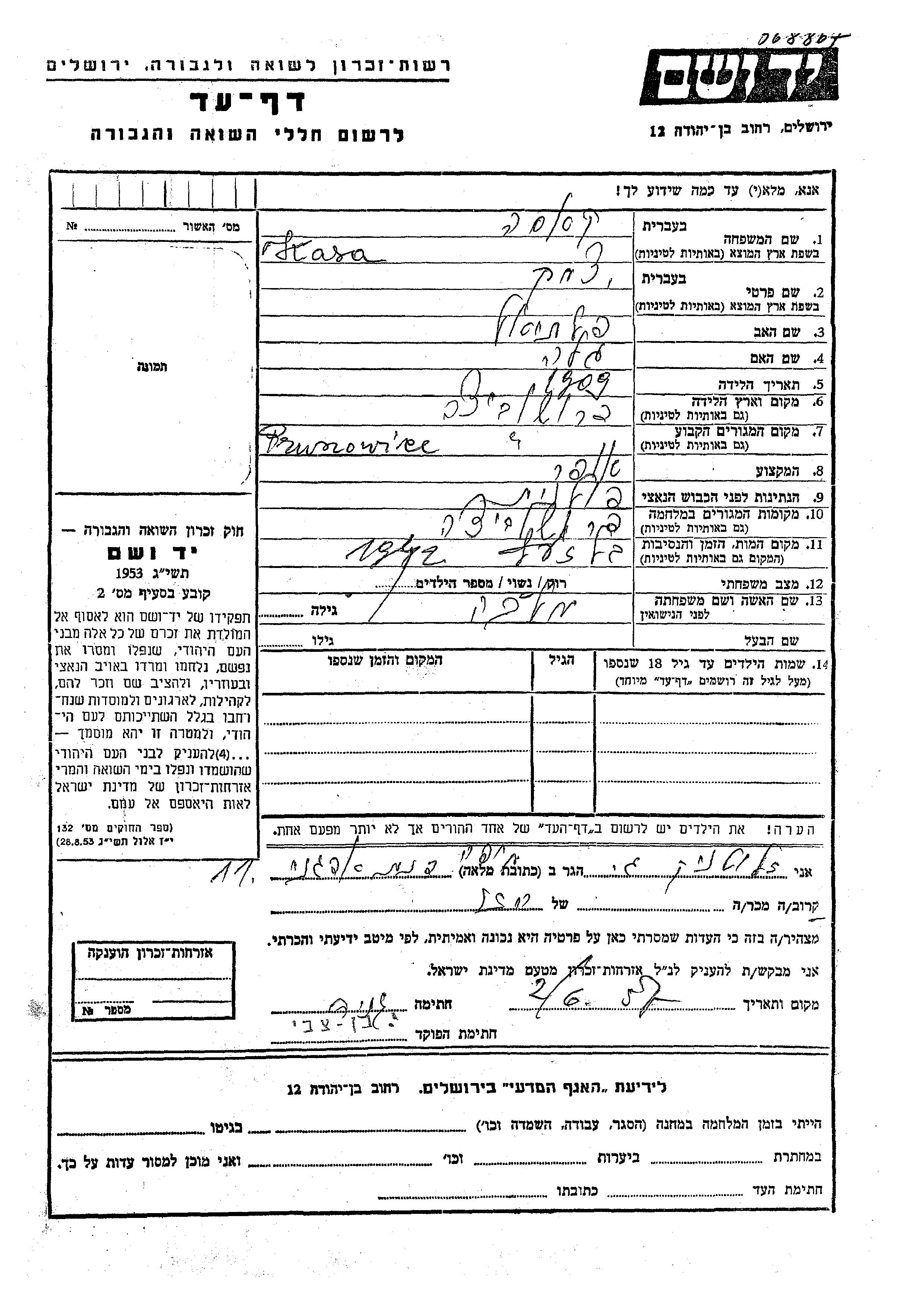 Яд Вашем - Листы свидетельских показаний Мемориального фонда
