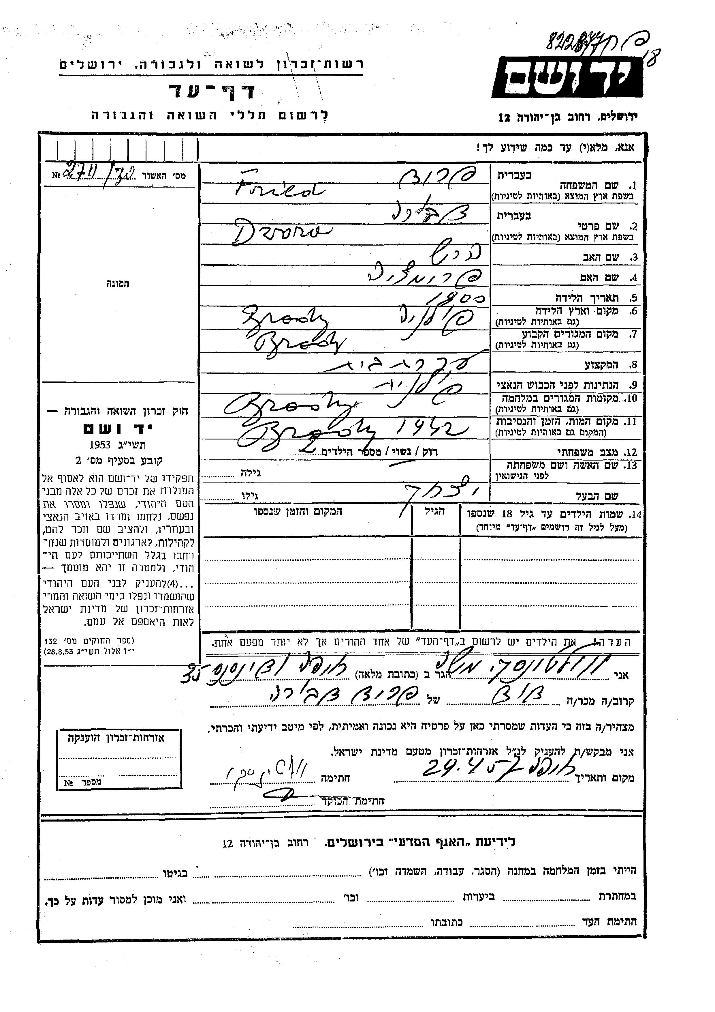 Яд Вашем - Листы свидетельских показаний Мемориального фонда