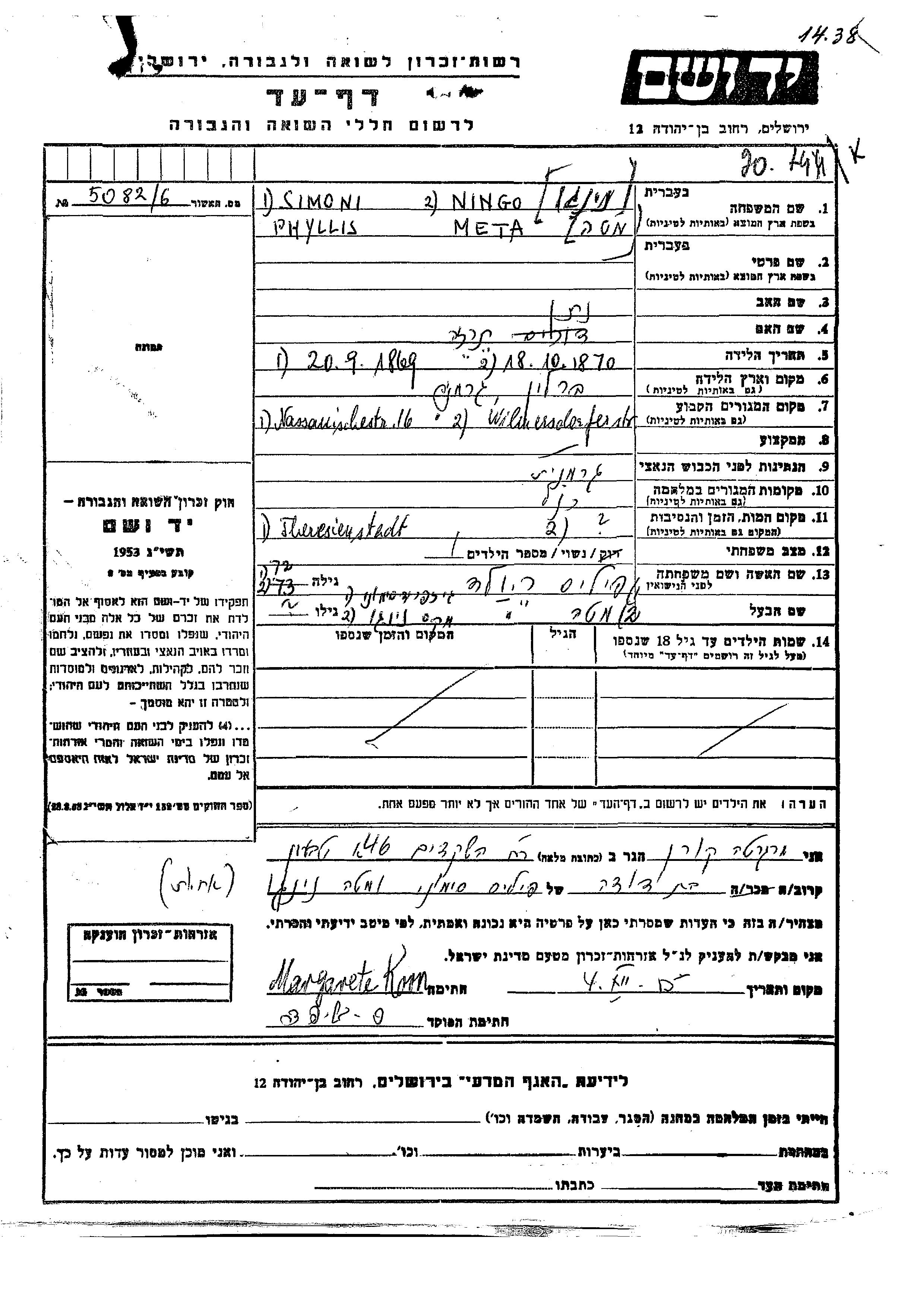 Филлис Симони, место рождения: Берлин, Германия. Женат / замужем. Место жительства до войны: Берлин, Германия. Место во время войны: Берлин, Германия.