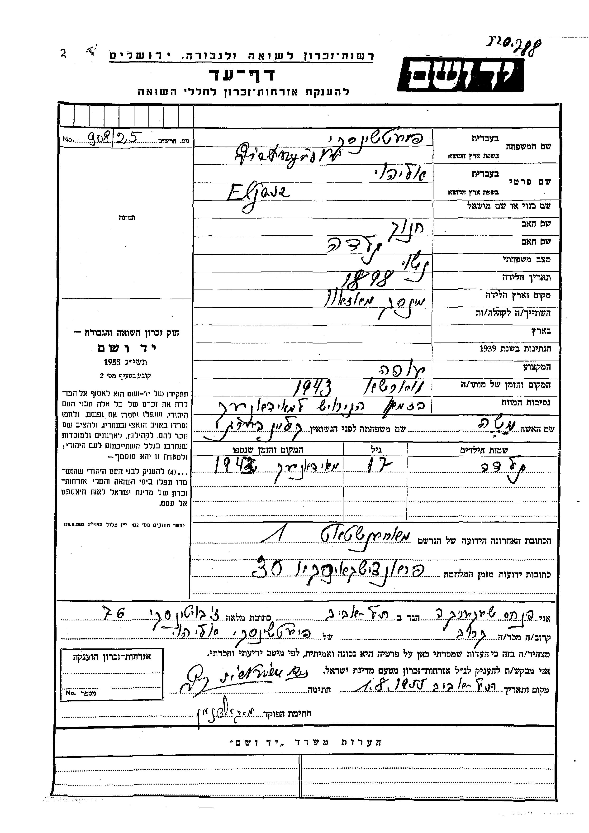Петжински | Элияху | 1855 | Варшава, Польша | Лист свидетельских показаний |