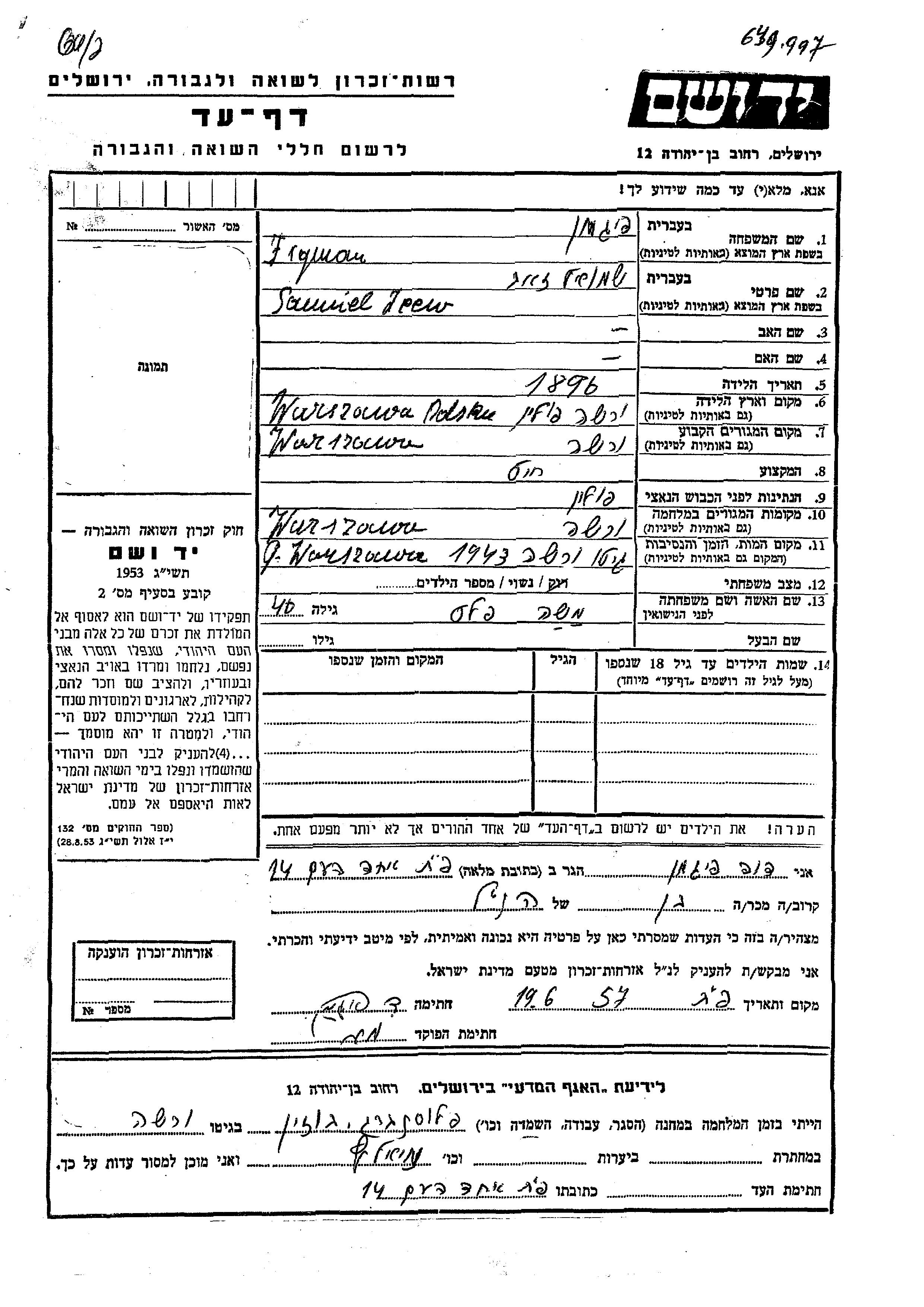 | Фигман | Зеев Шмуэль | 1896 | Варшава, Польша | Лист свидетельских показаний |