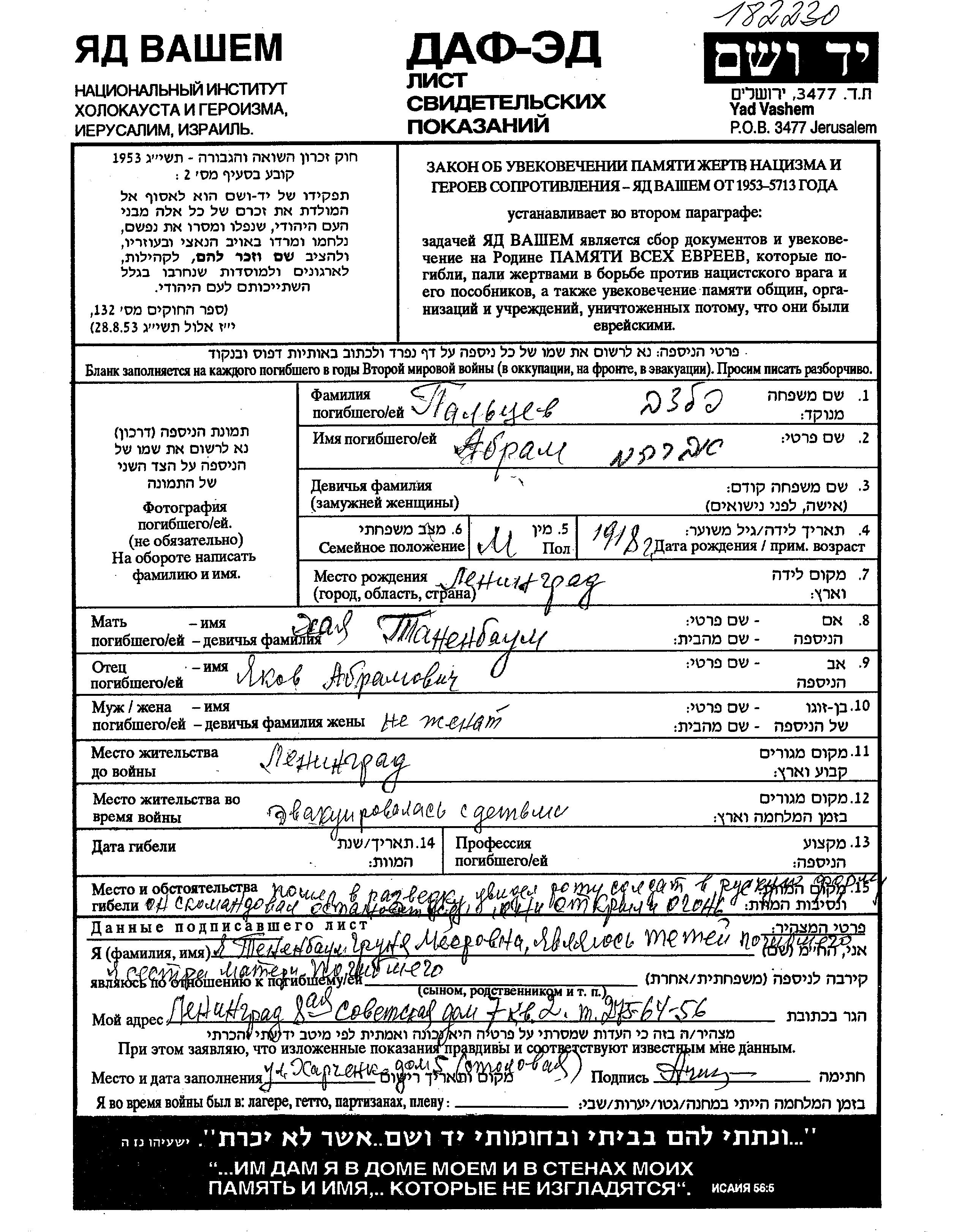Поиск подателя Листа свидетельских показаний. Поиск по любому имени, включая уменьшительное или прозвище
