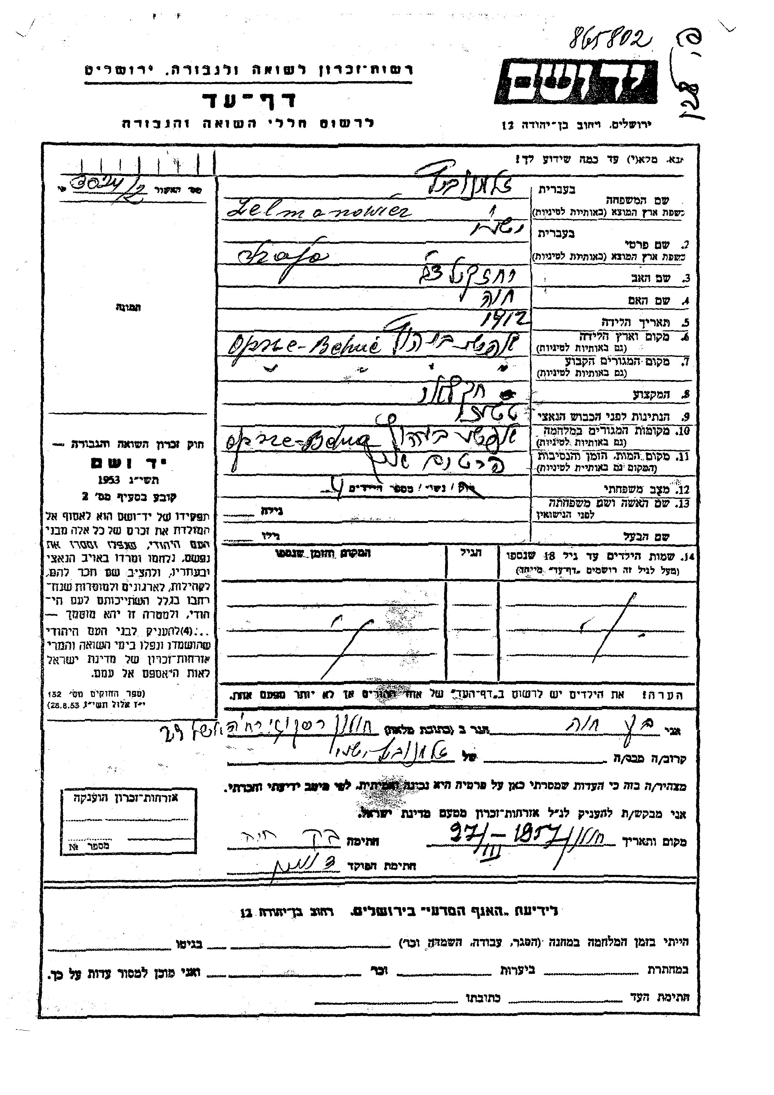 Яд Вашем - Листы свидетельских показаний Мемориального фонда