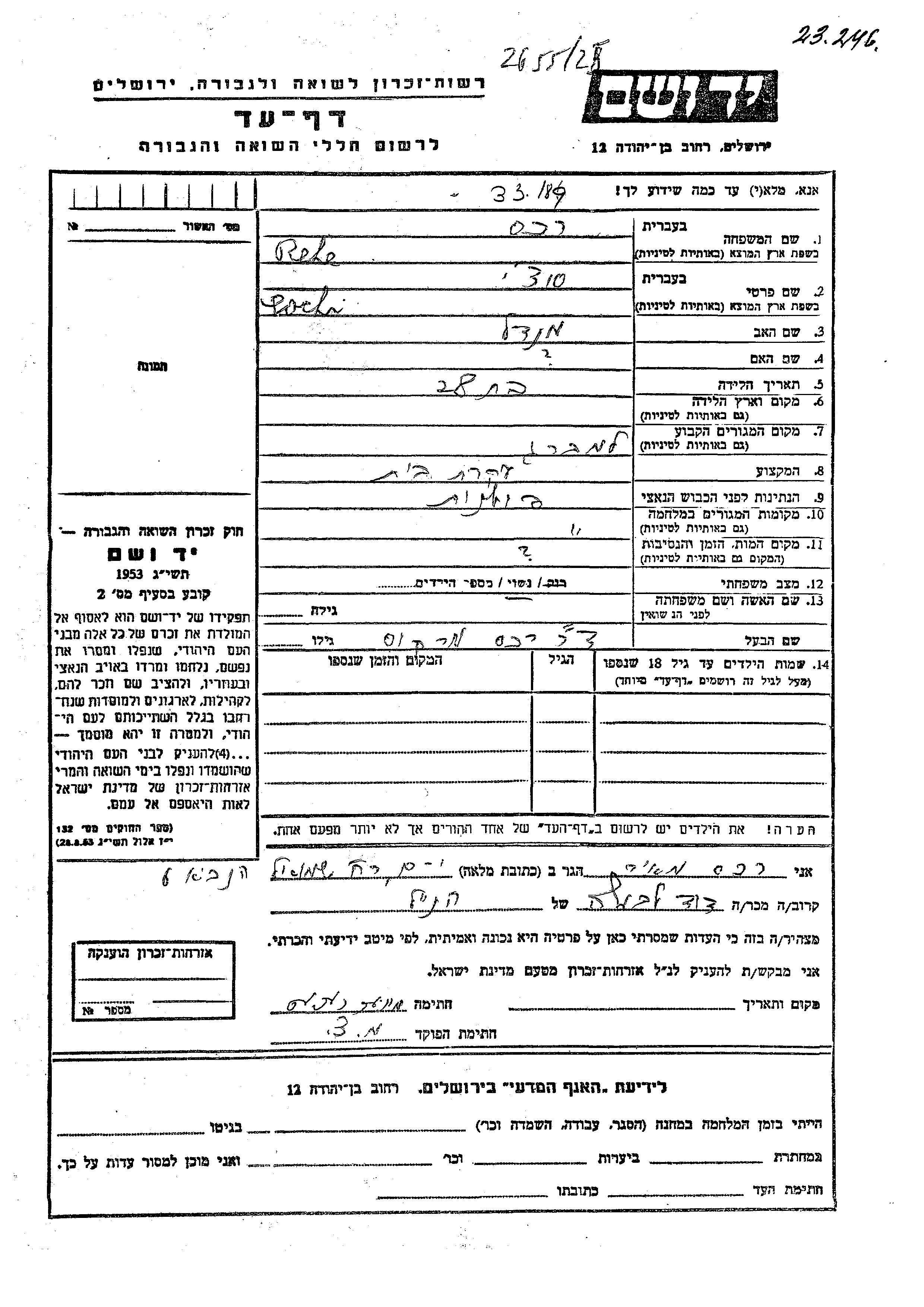 Яд Вашем - Листы свидетельских показаний Мемориального фонда