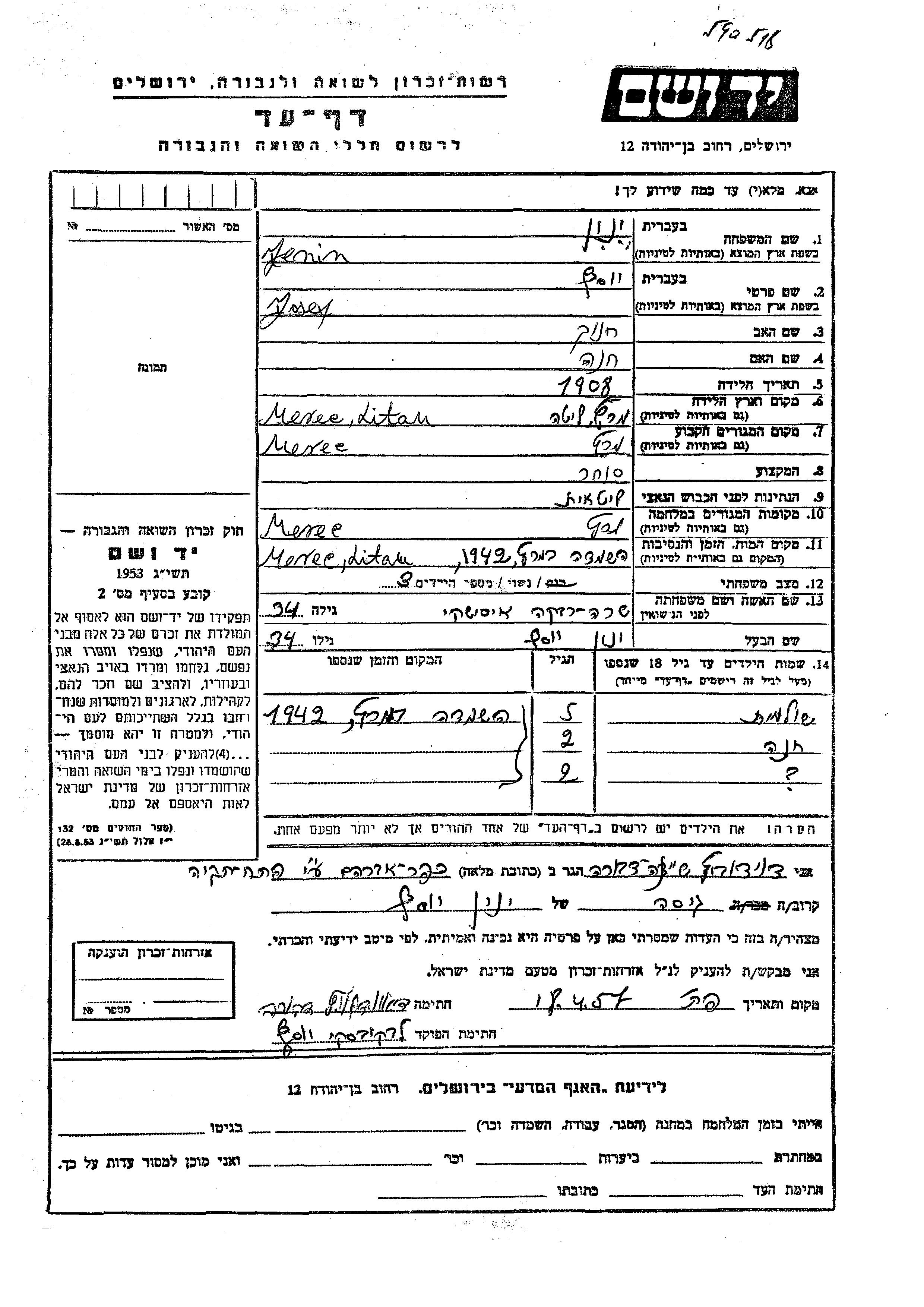 Яд Вашем - Листы свидетельских показаний Мемориального фонда