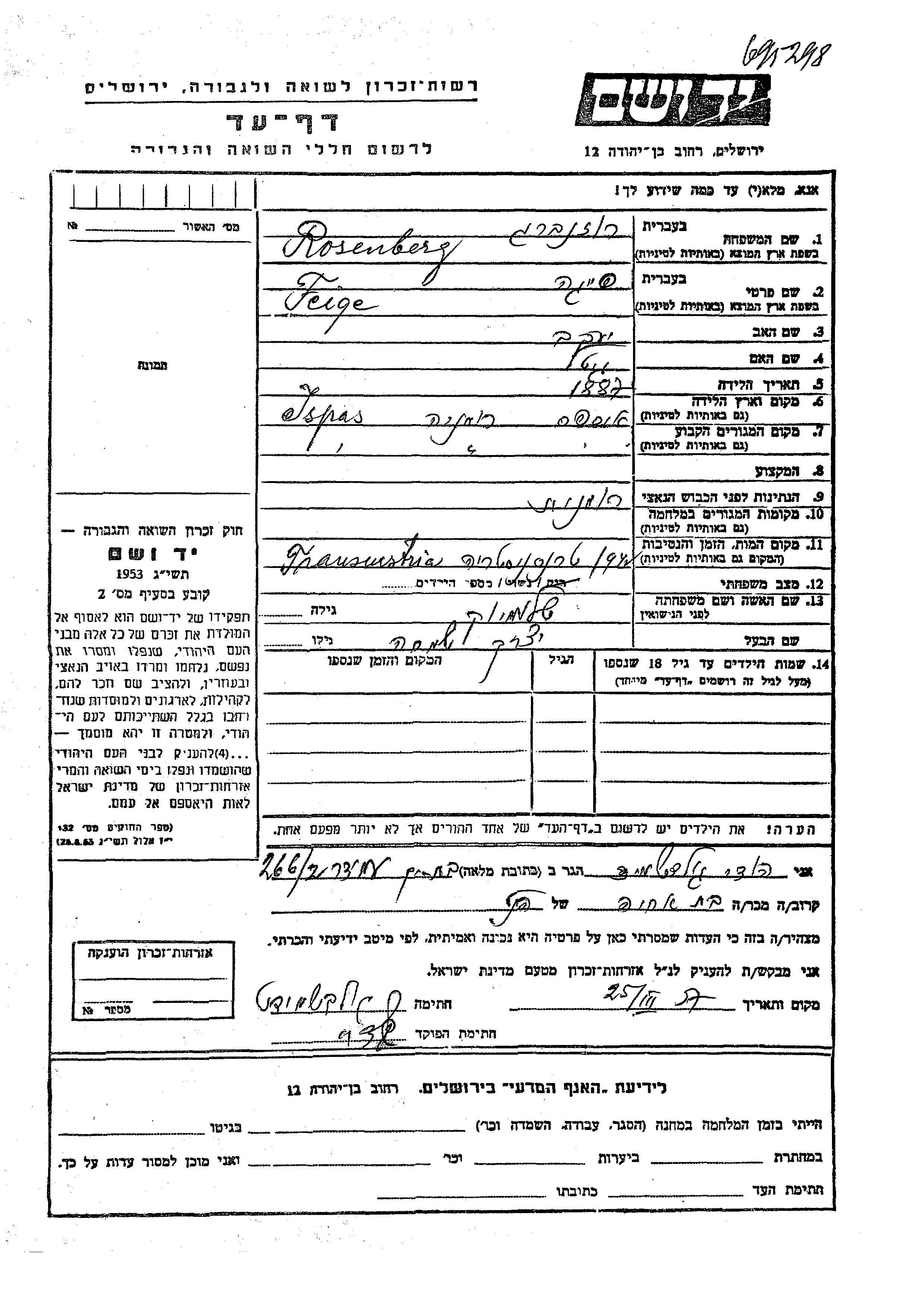 Яд Вашем - Листы свидетельских показаний Мемориального фонда