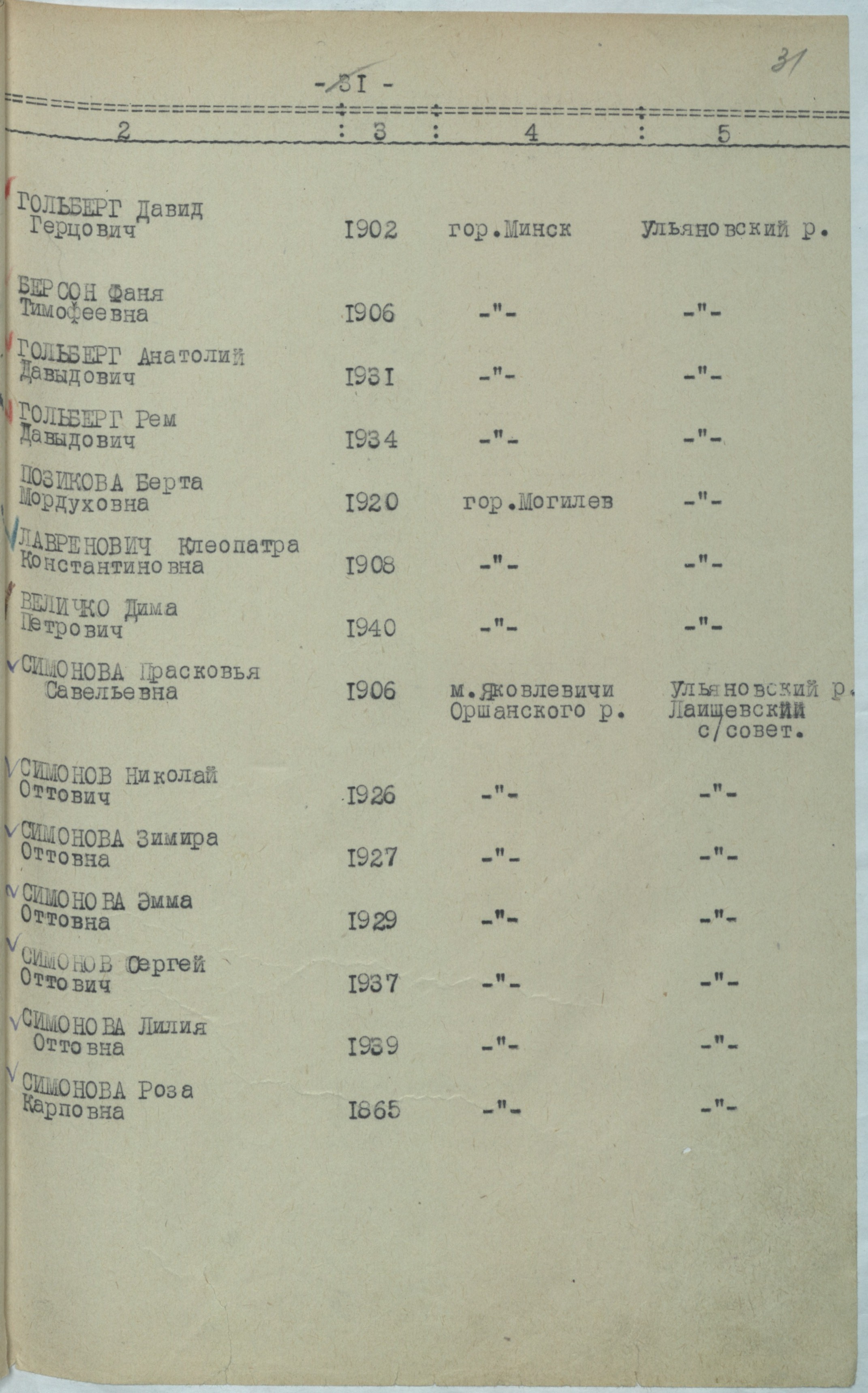 Позикова Берта 1920 Могилёв, Белоруссия (СССР) Список эвакуированных