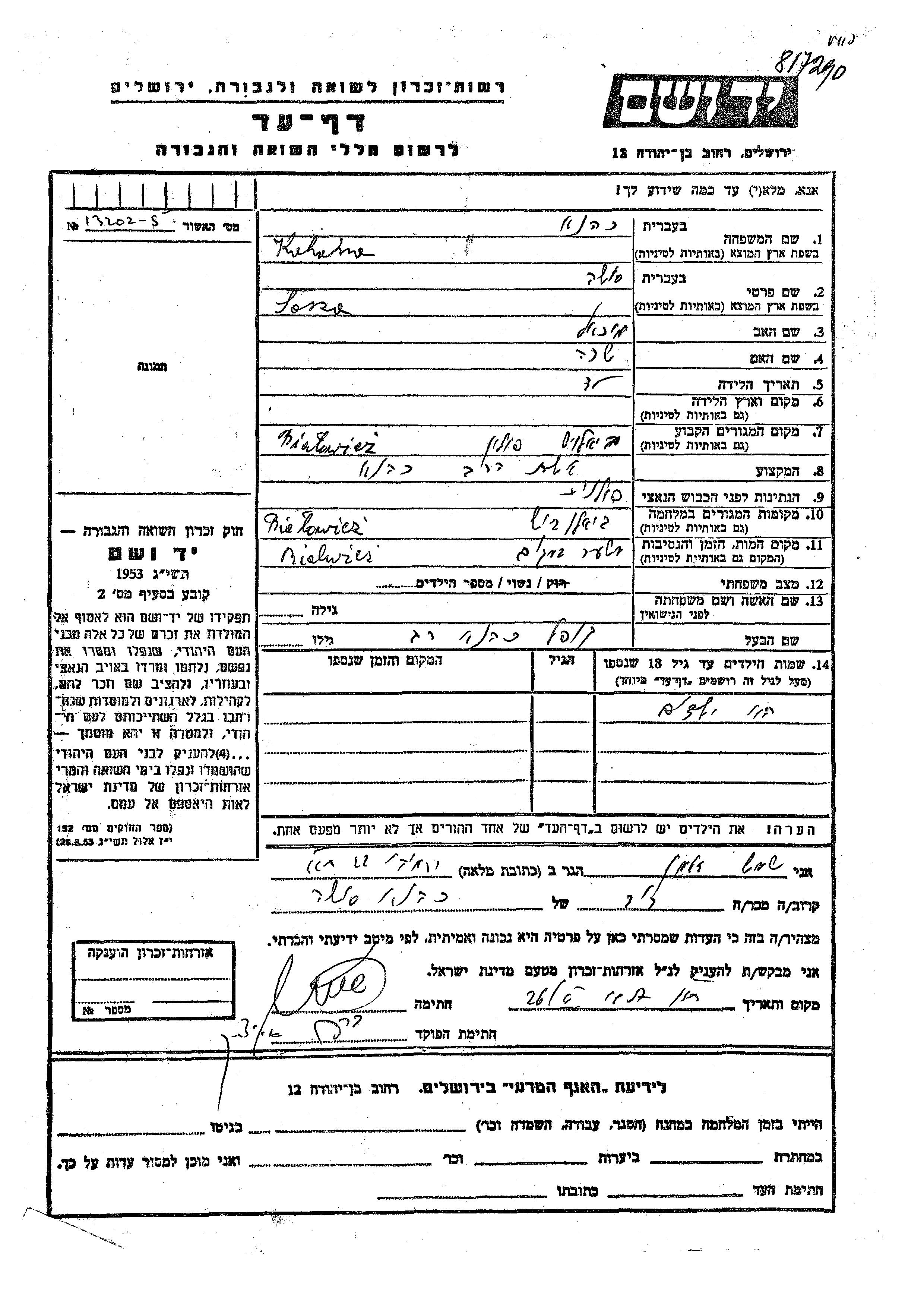 Кахана Соша Беловеж, Польша Лист свидетельских показаний