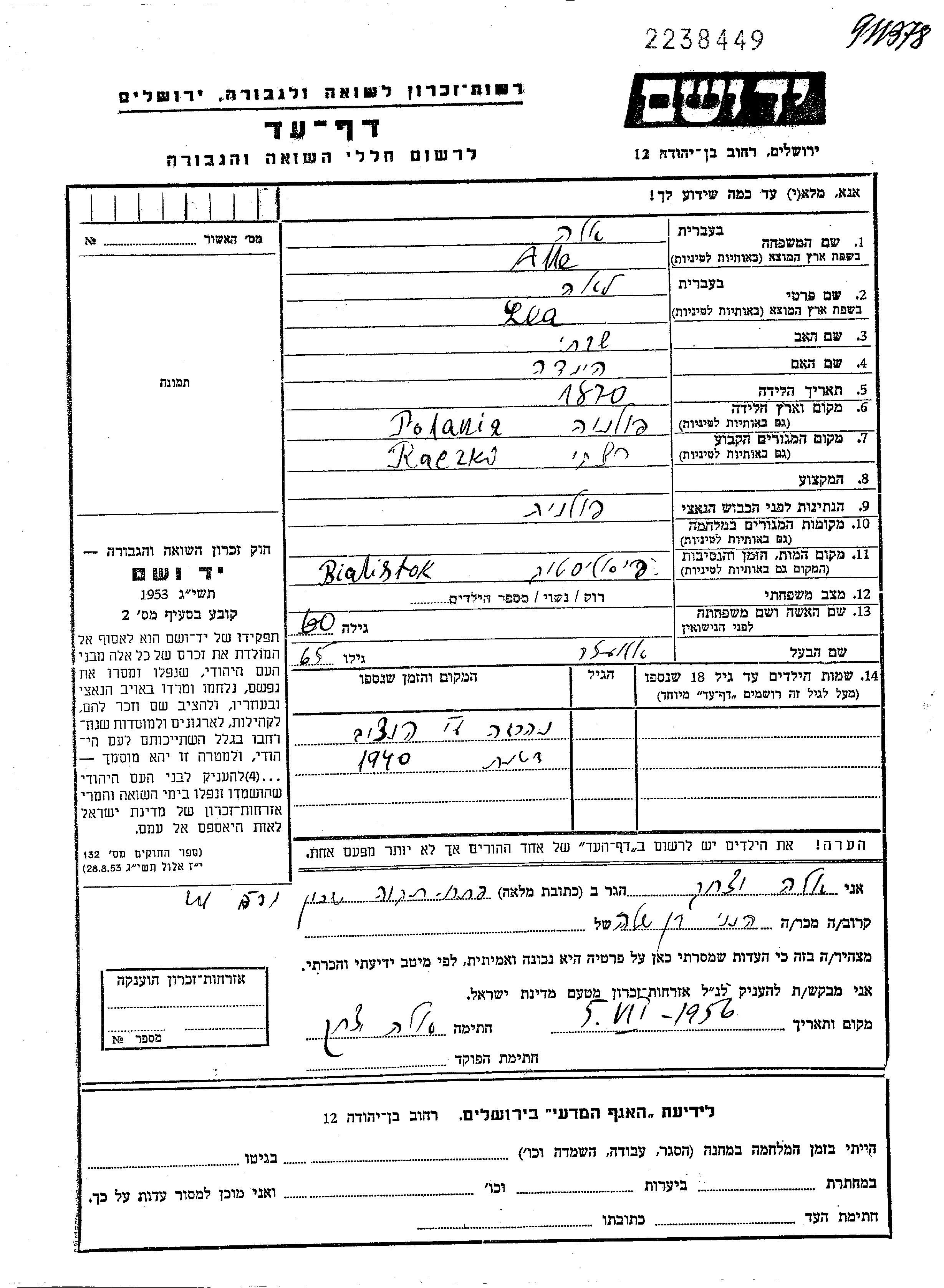 Алле Лея Рачки, Польша Лист свидетельских показаний