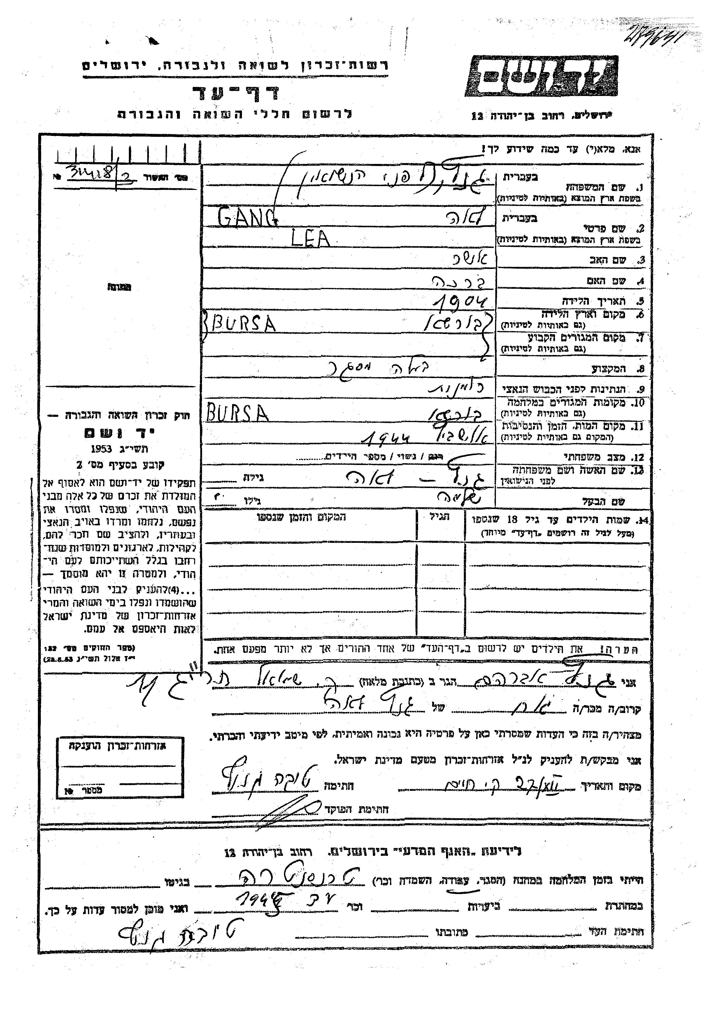 Ганц | Лея | 1904 | Борша, Румыния | Лист свидетельских показаний |
