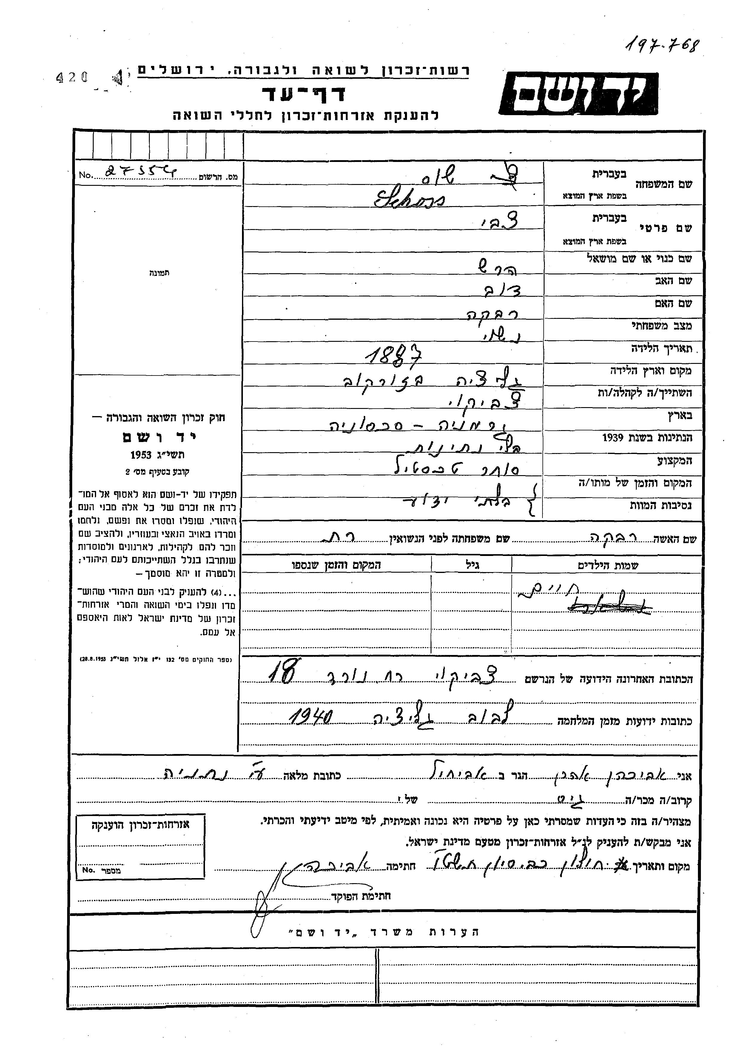 Яд Вашем - Листы свидетельских показаний Мемориального фонда