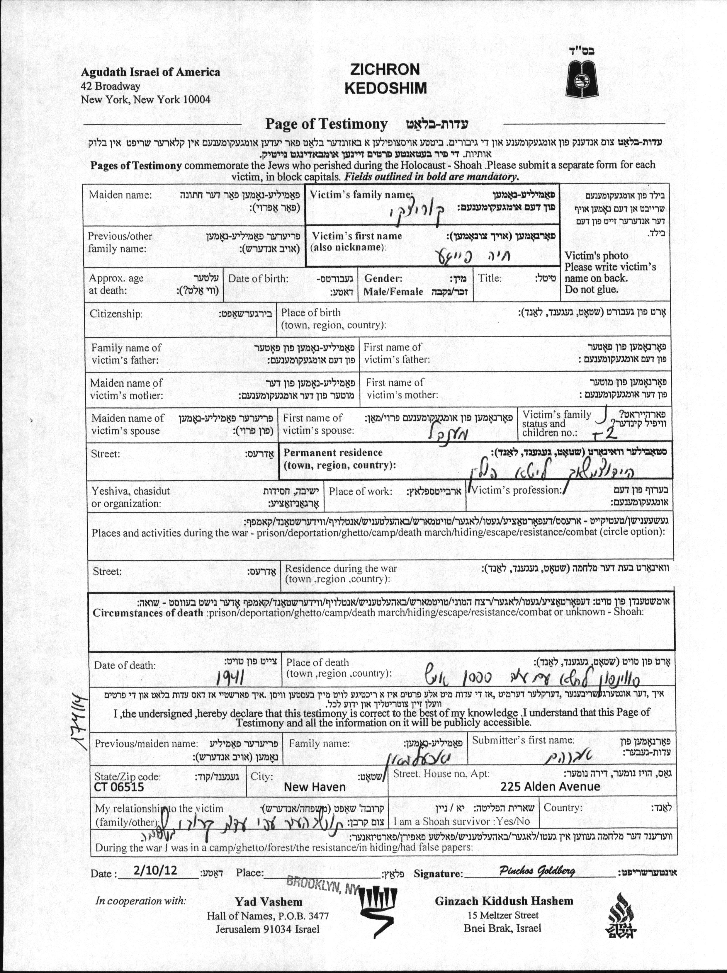Яд Вашем - Листы свидетельских показаний Мемориального фонда