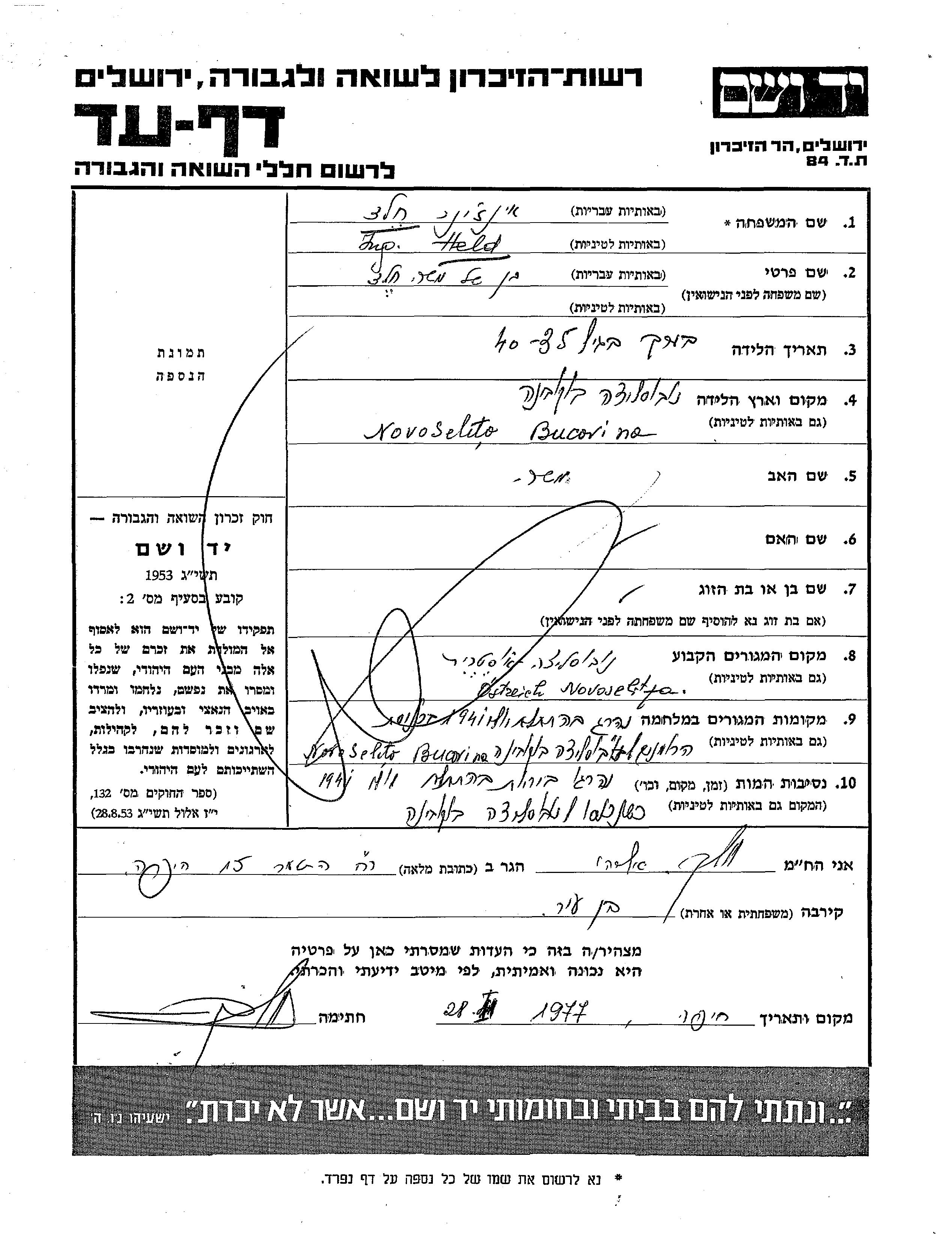 Халд Имя неизвестно Новоселица, Румыния Лист свидетельских показаний
