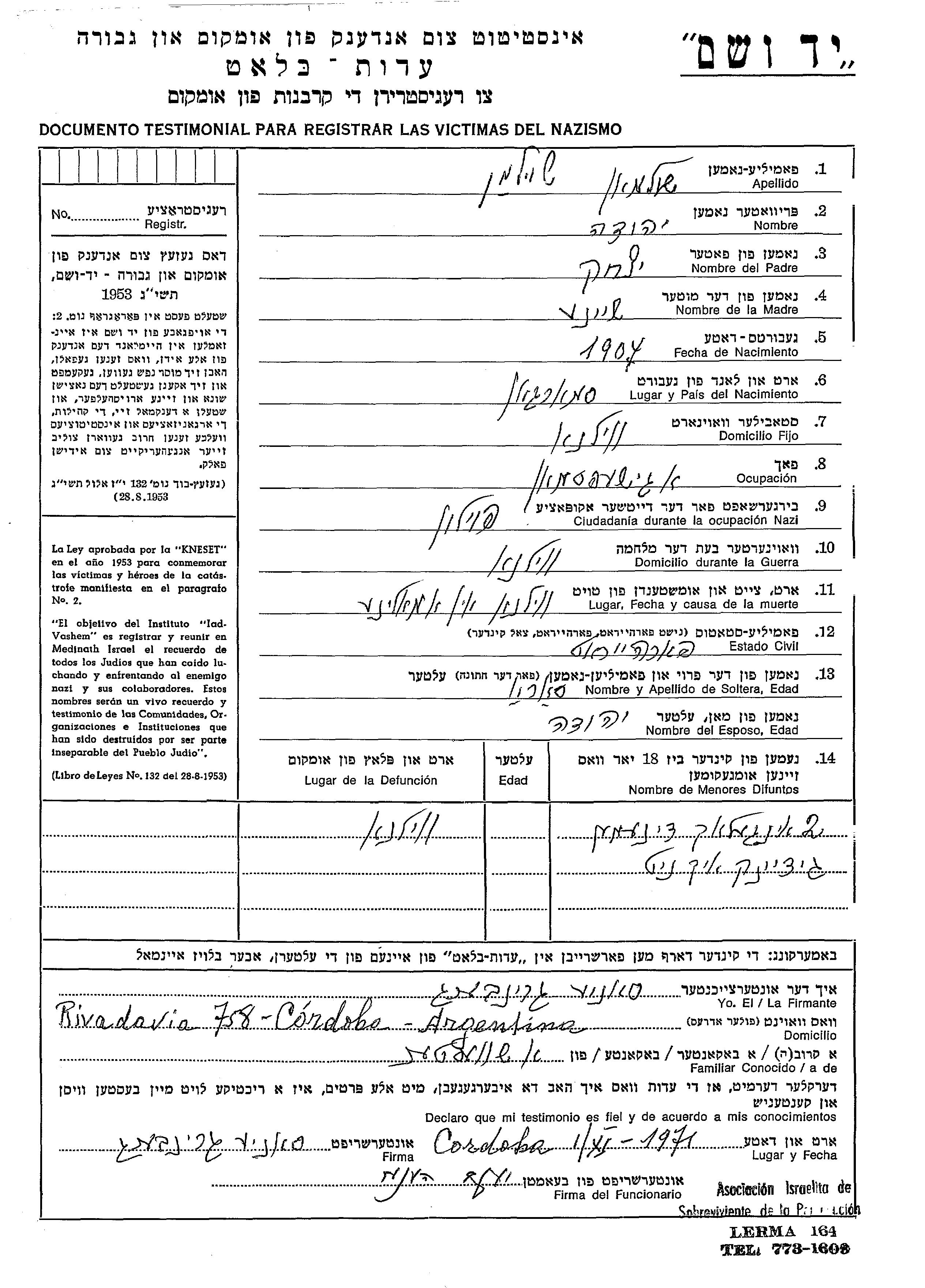 Яд Вашем - Листы свидетельских показаний Мемориального фонда