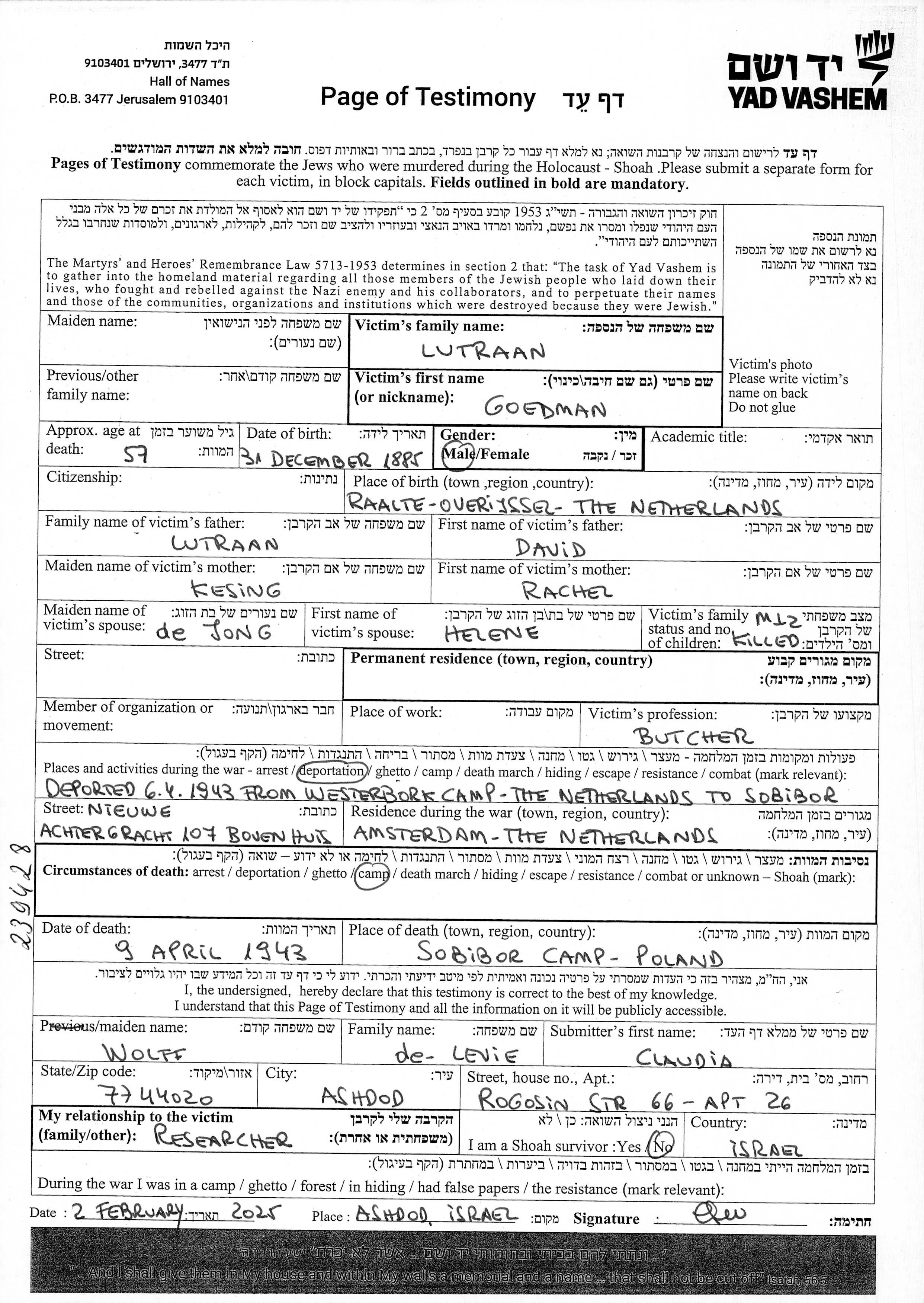 Лютран | Гудман | 1885 | Ралте, Нидерланды | Список уничтоженных евреев из Нидерландов |