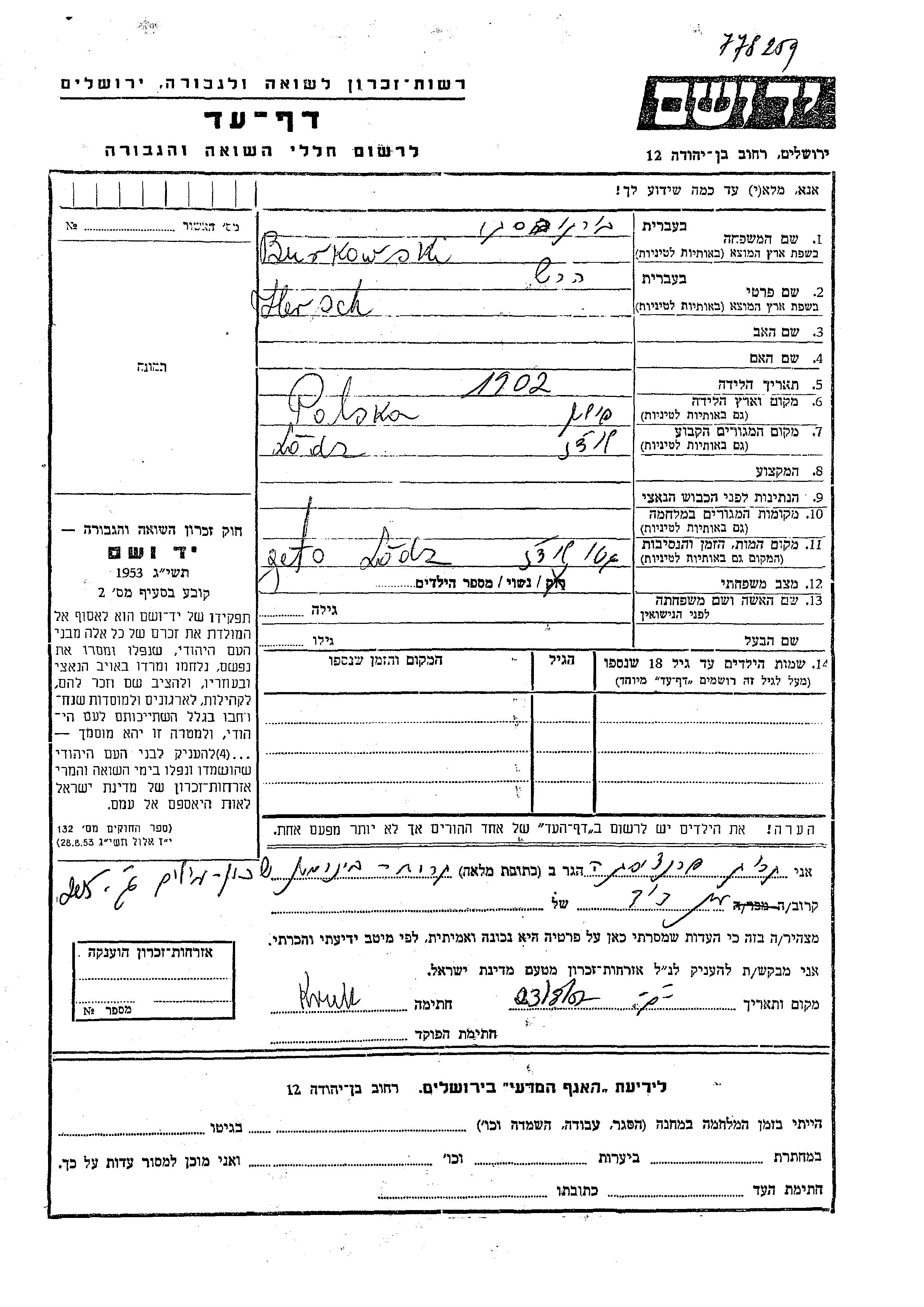 Яд Вашем - Листы свидетельских показаний Мемориального фонда