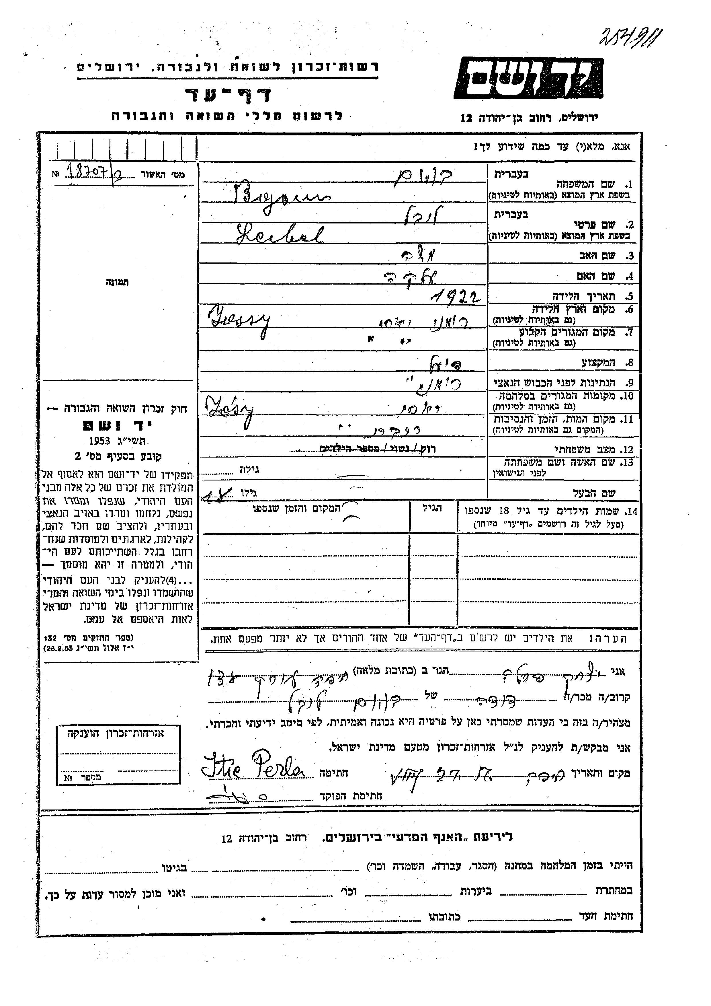 Яд Вашем - Листы свидетельских показаний Мемориального фонда