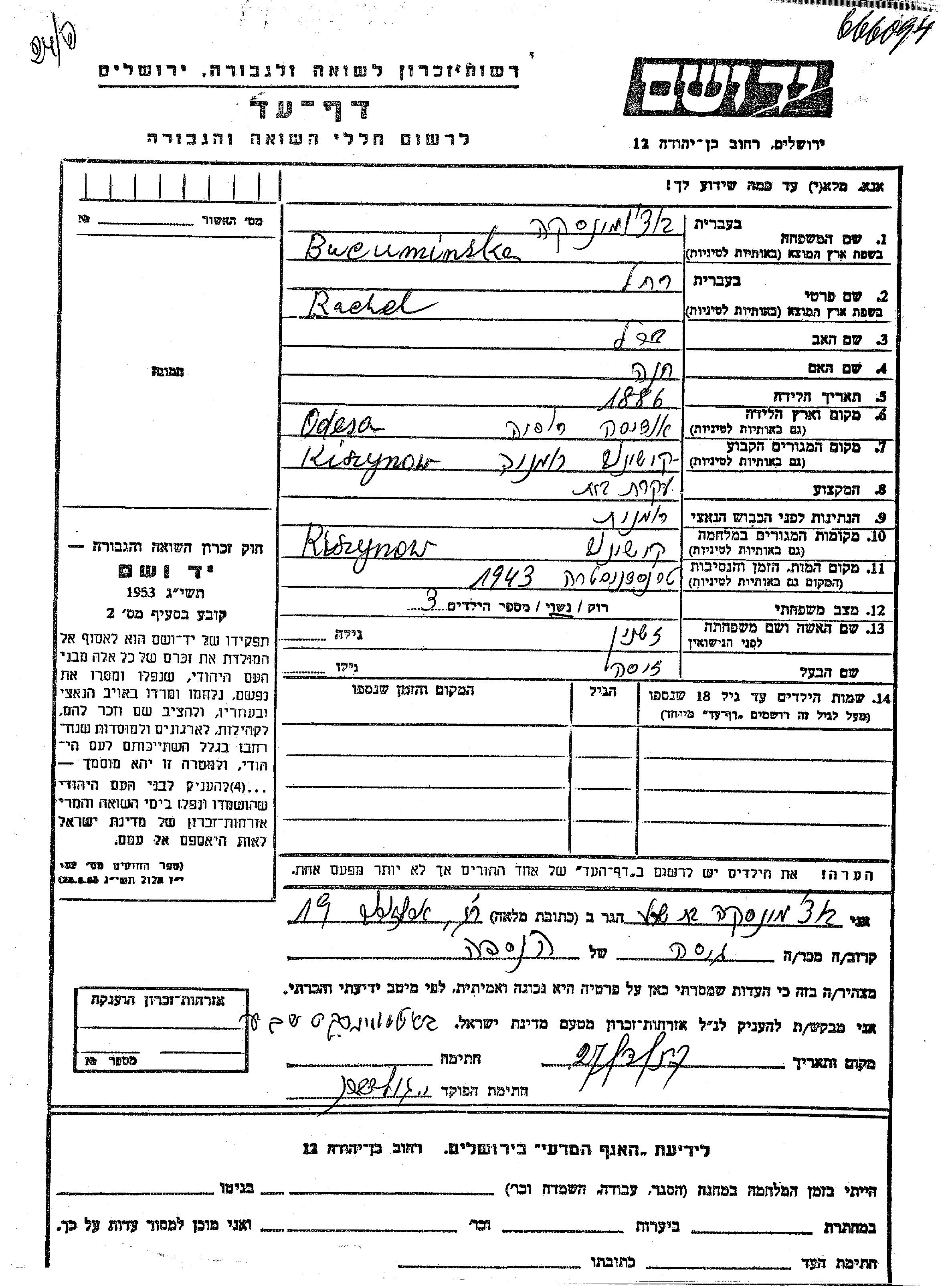 Бучуминска Рахель 1886 Кишинёв, Румыния Лист свидетельских показаний