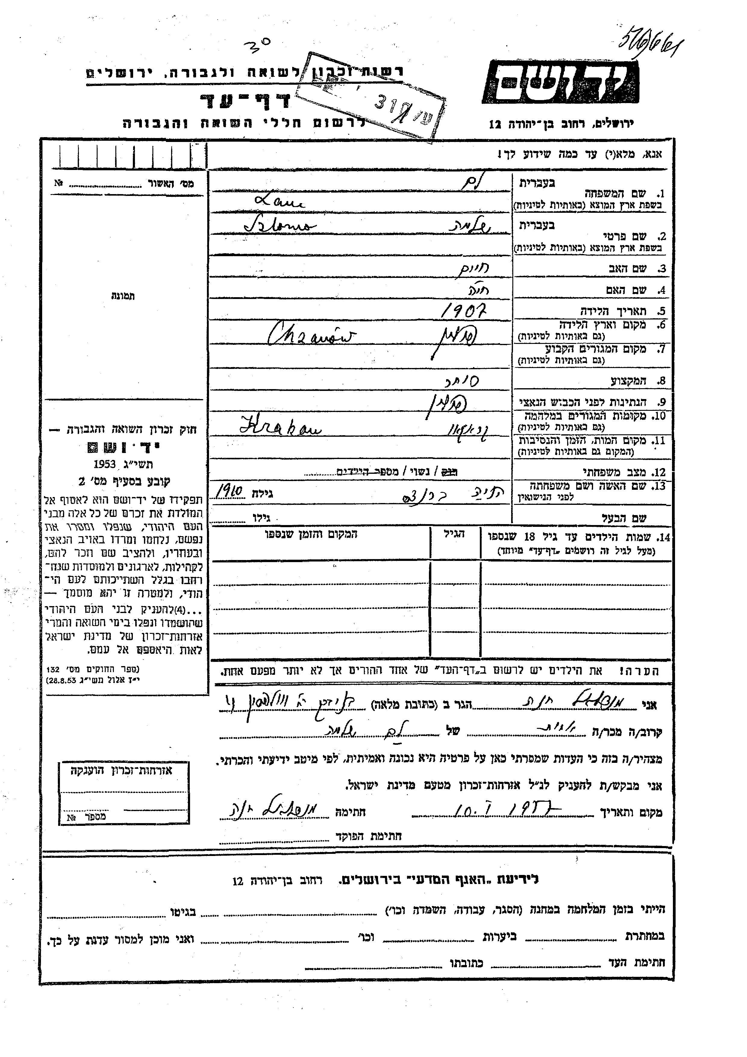 Лам Шлома 1907 место не указано, Лист свидетельских показаний