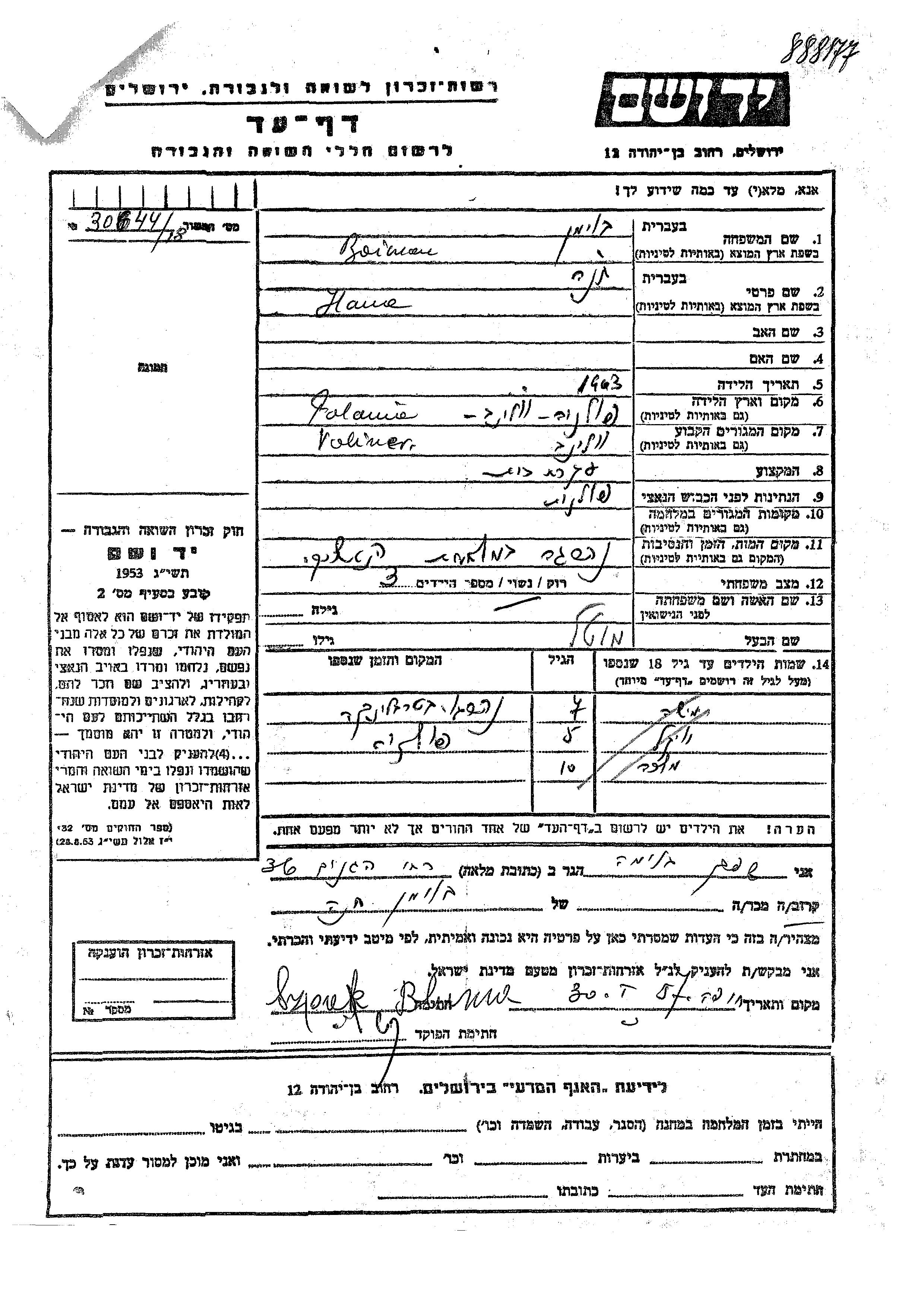 Хана Бойман, место рождения: Волянув, Польша. Домохозяйка. Женат / замужем. Место жительства до войны: Волянув, Польша.