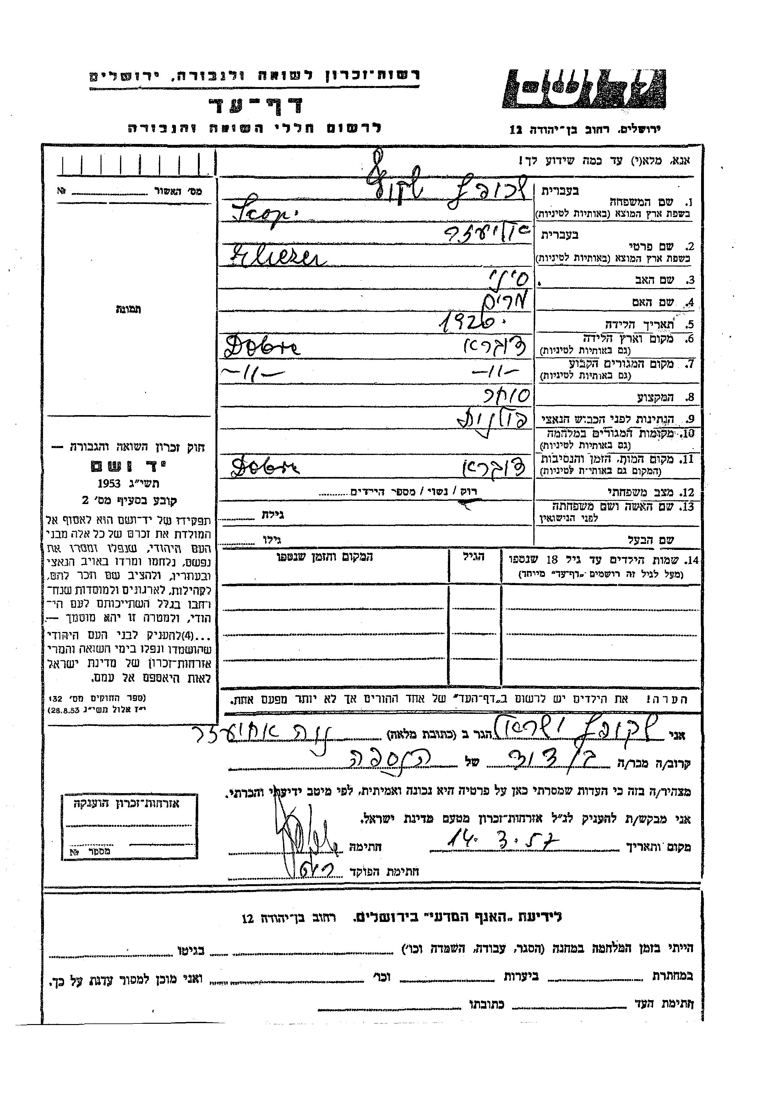 Яд Вашем - Листы свидетельских показаний Мемориального фонда