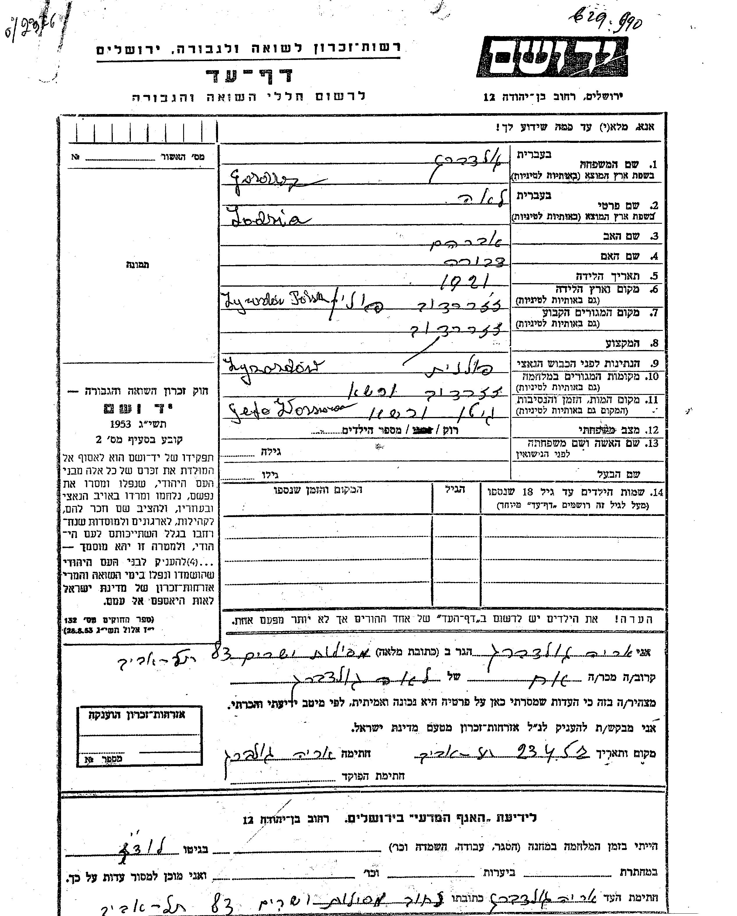 Яд Вашем - Листы свидетельских показаний Мемориального фонда