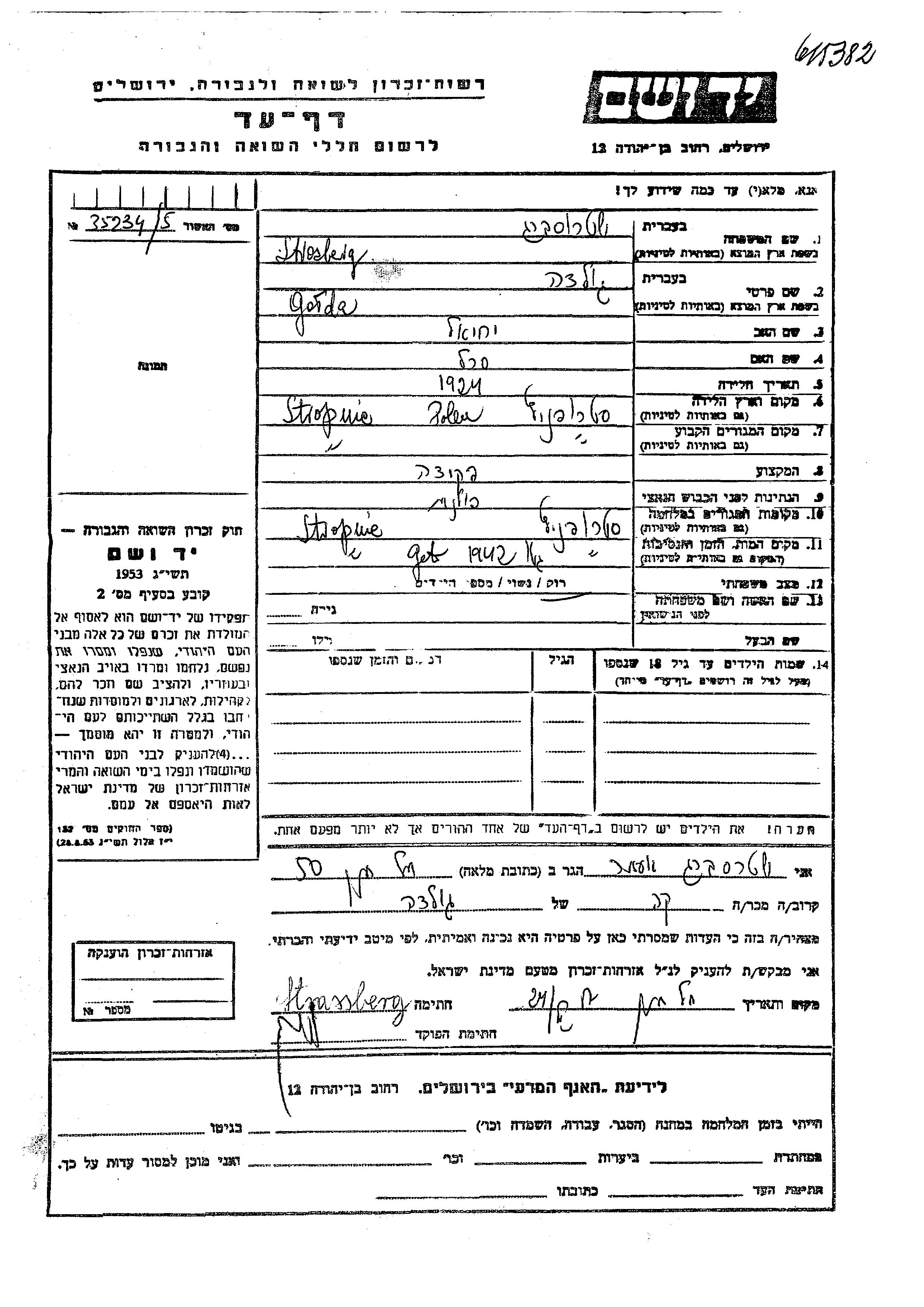 Яд Вашем - Листы свидетельских показаний Мемориального фонда