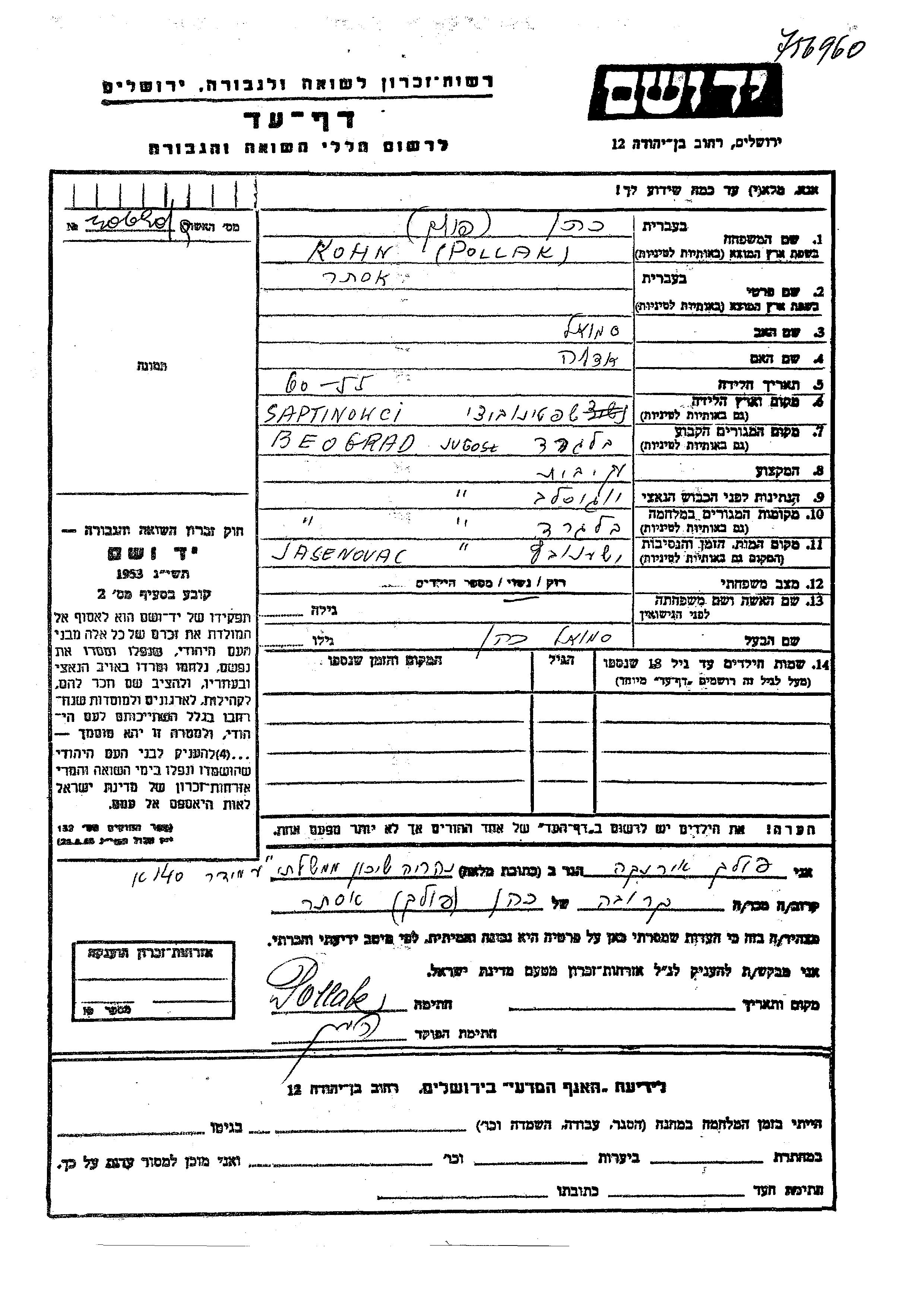 Яд Вашем - Листы свидетельских показаний Мемориального фонда