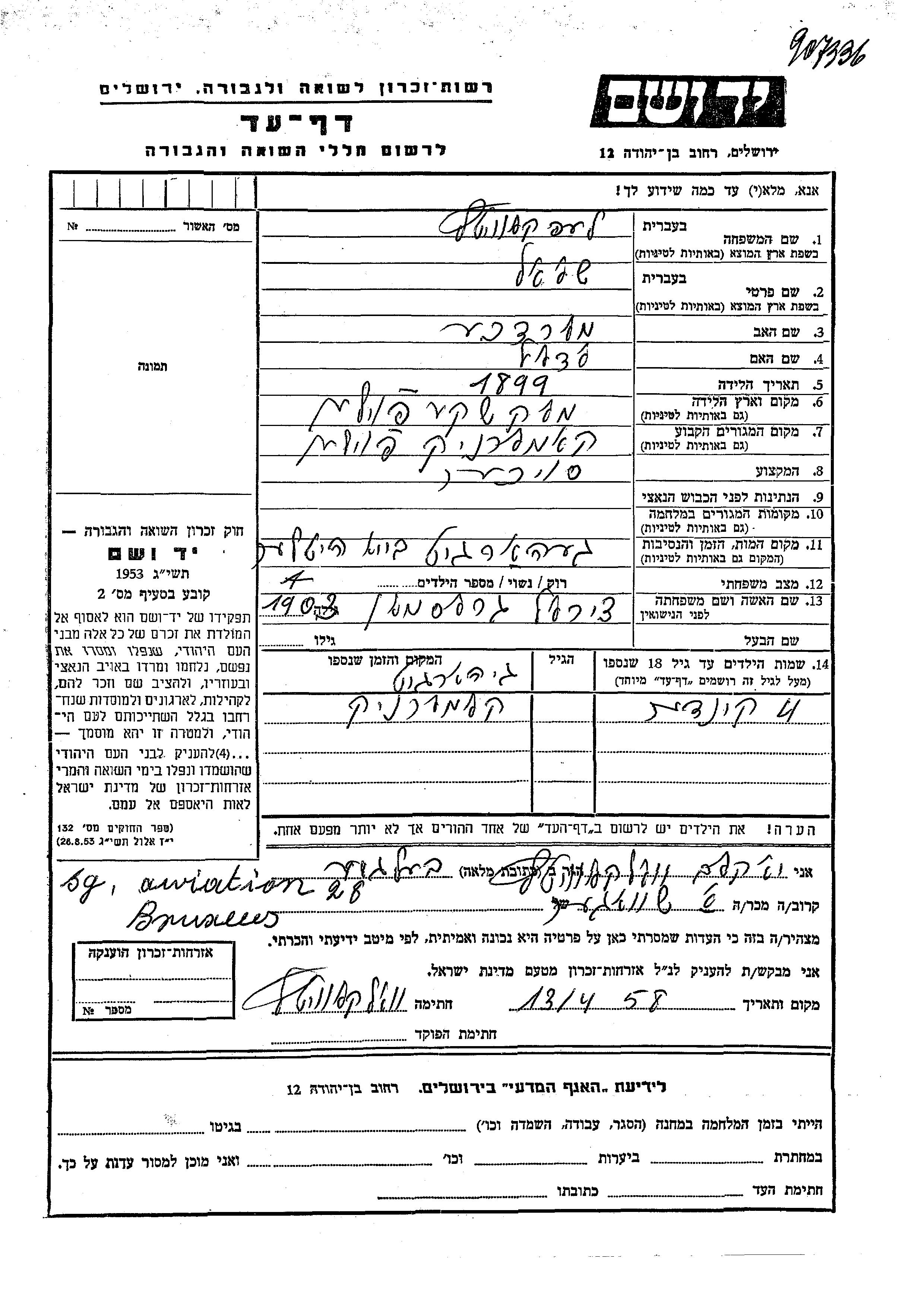Левковиц | Шауль | Mokrsko, Польша | Лист свидетельских показаний |