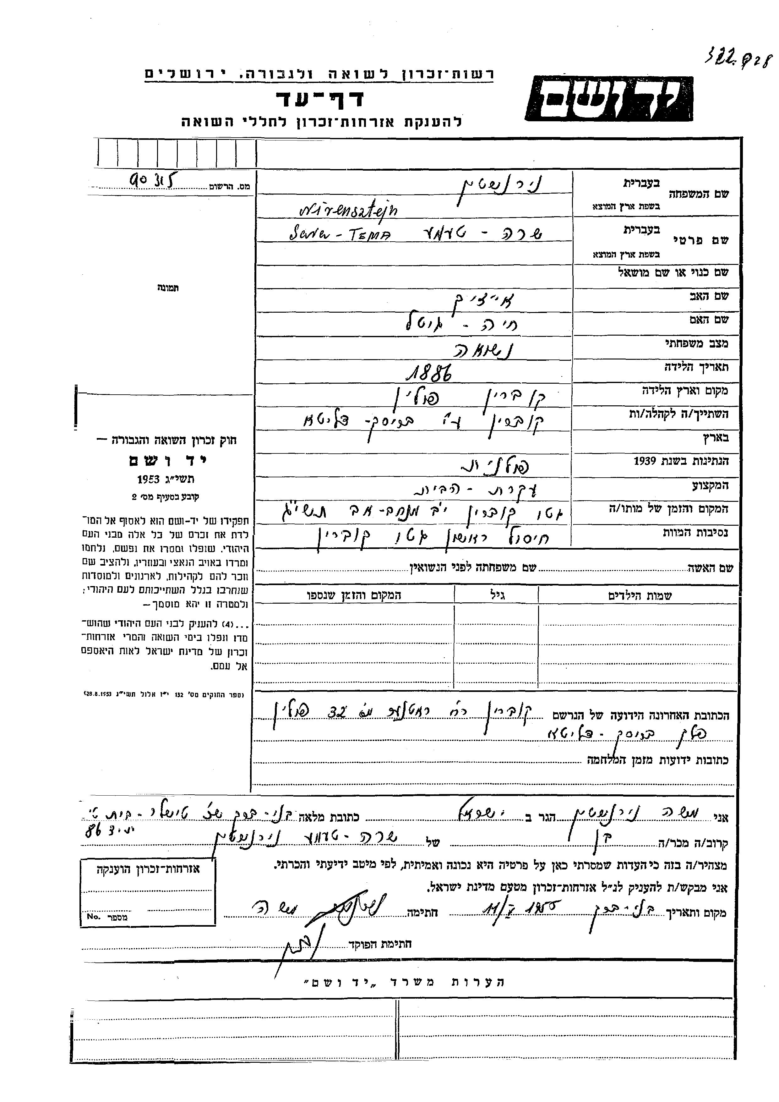 Яд Вашем - Листы свидетельских показаний Мемориального фонда