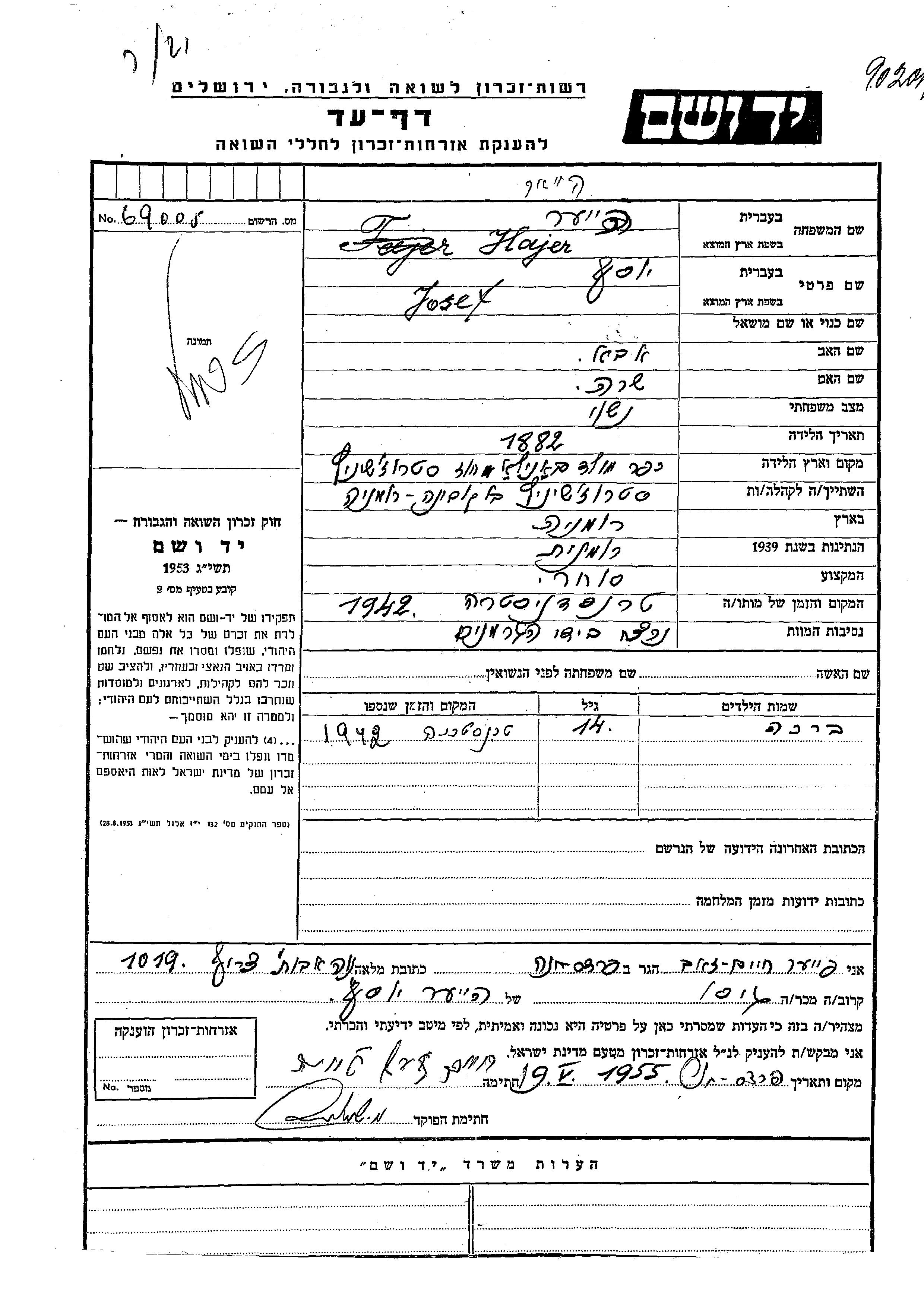 Йосеф уничтожен в период Шоа. место смерти: Транснистрия, Украина (СССР) в 1942.