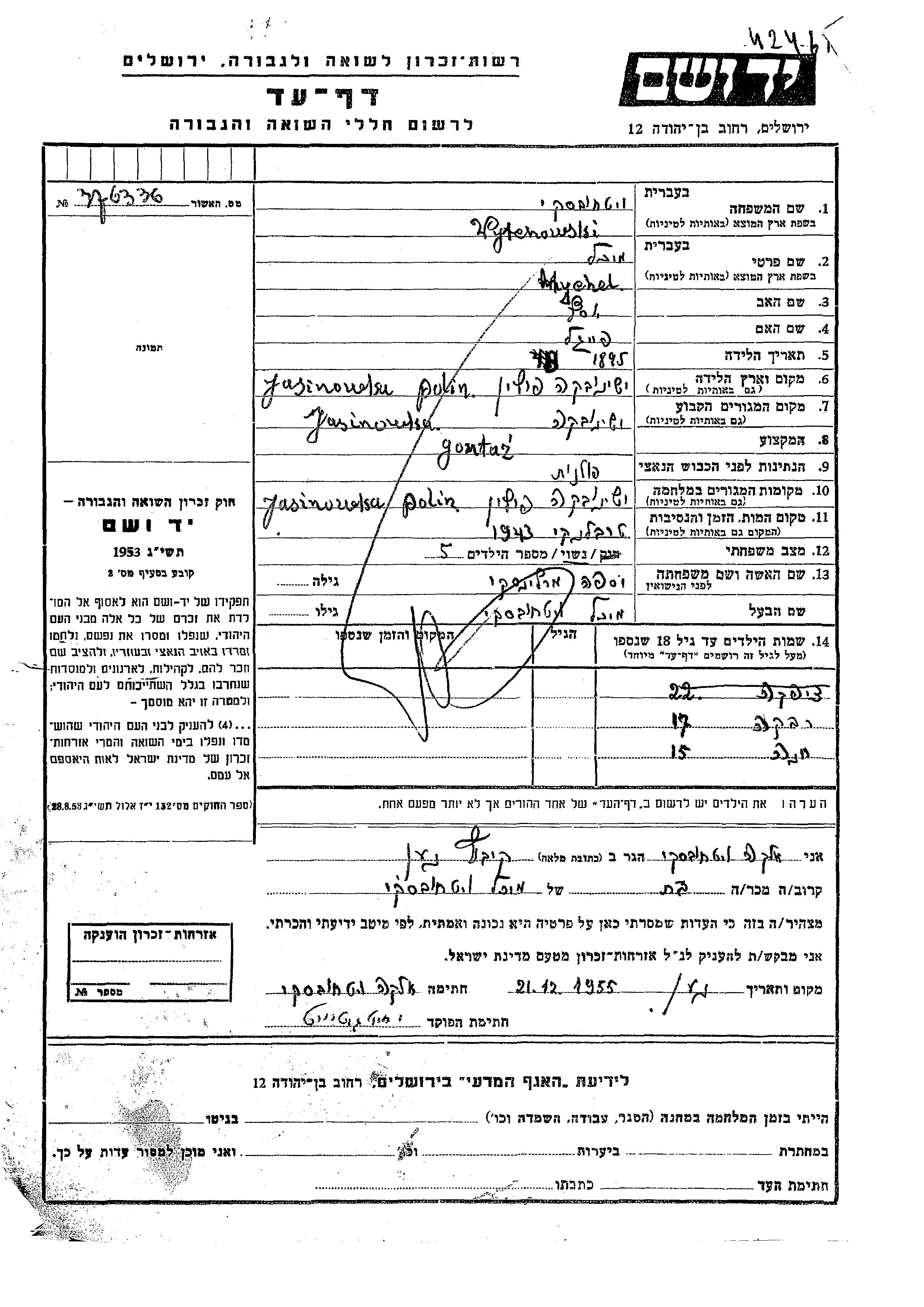 Яд Вашем - Листы свидетельских показаний Мемориального фонда