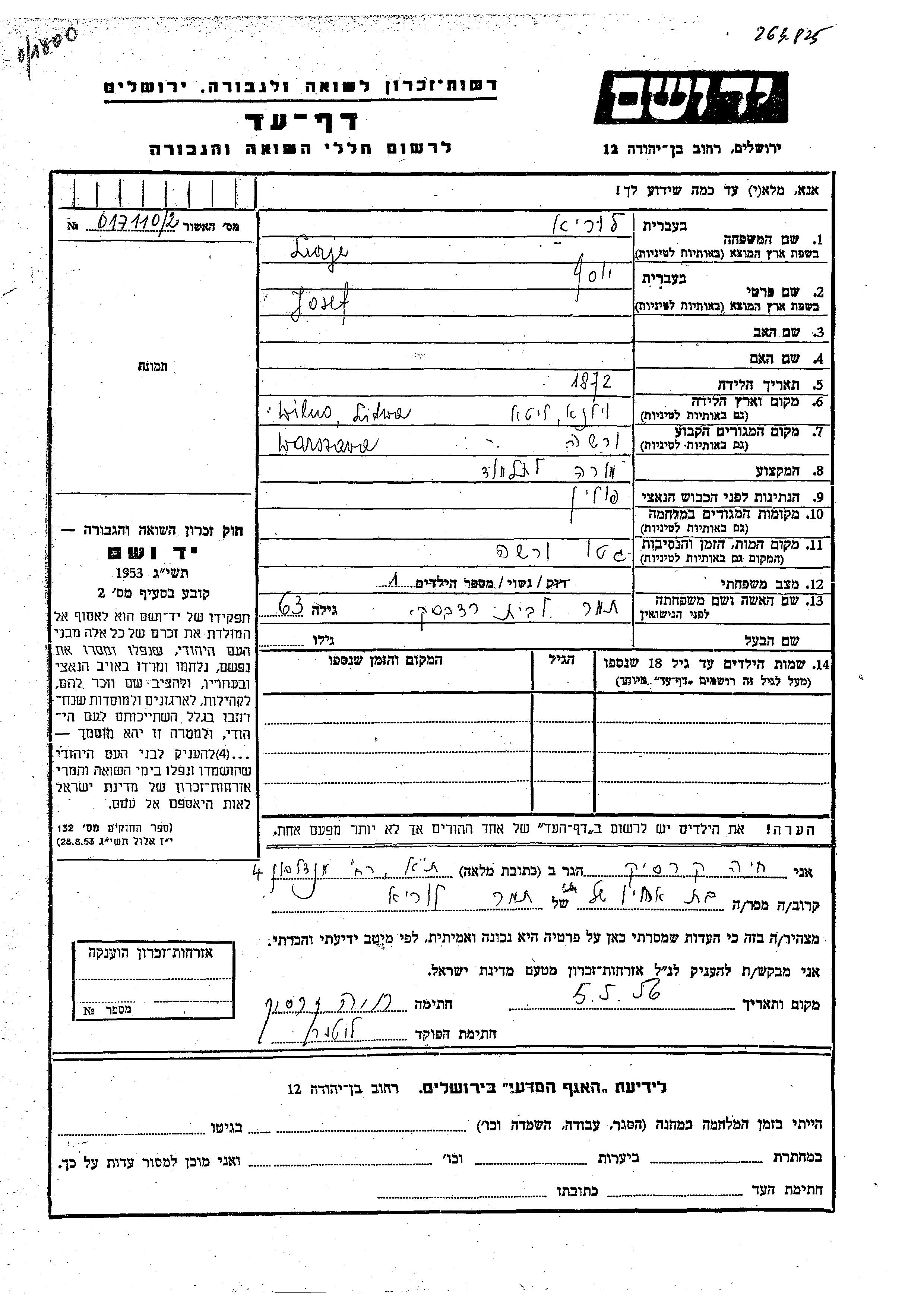 Яд Вашем - Листы свидетельских показаний Мемориального фонда