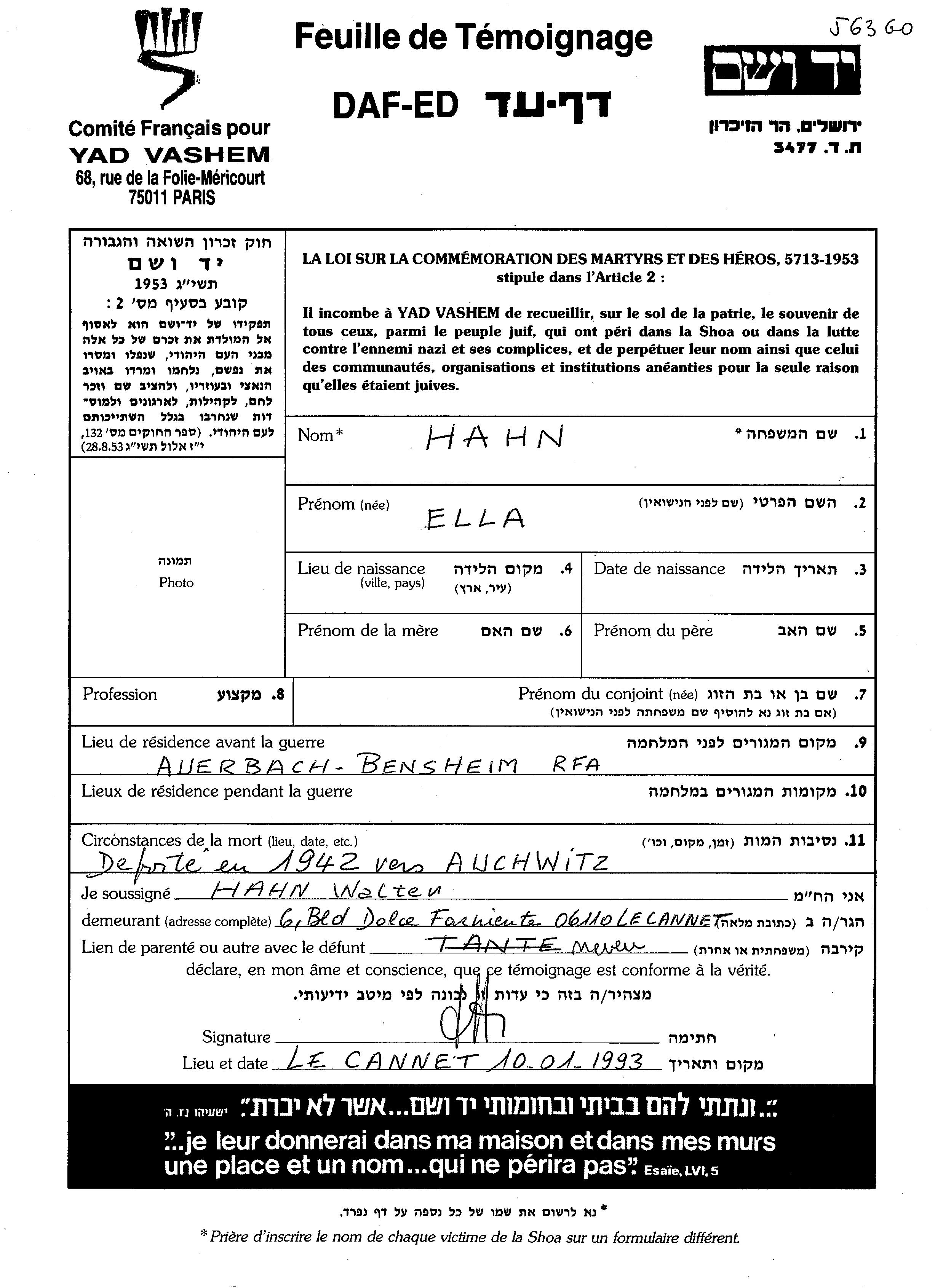 Хан Хен Элла Ауэрбах-Бенсхейм, Германия Лист свидетельских показаний