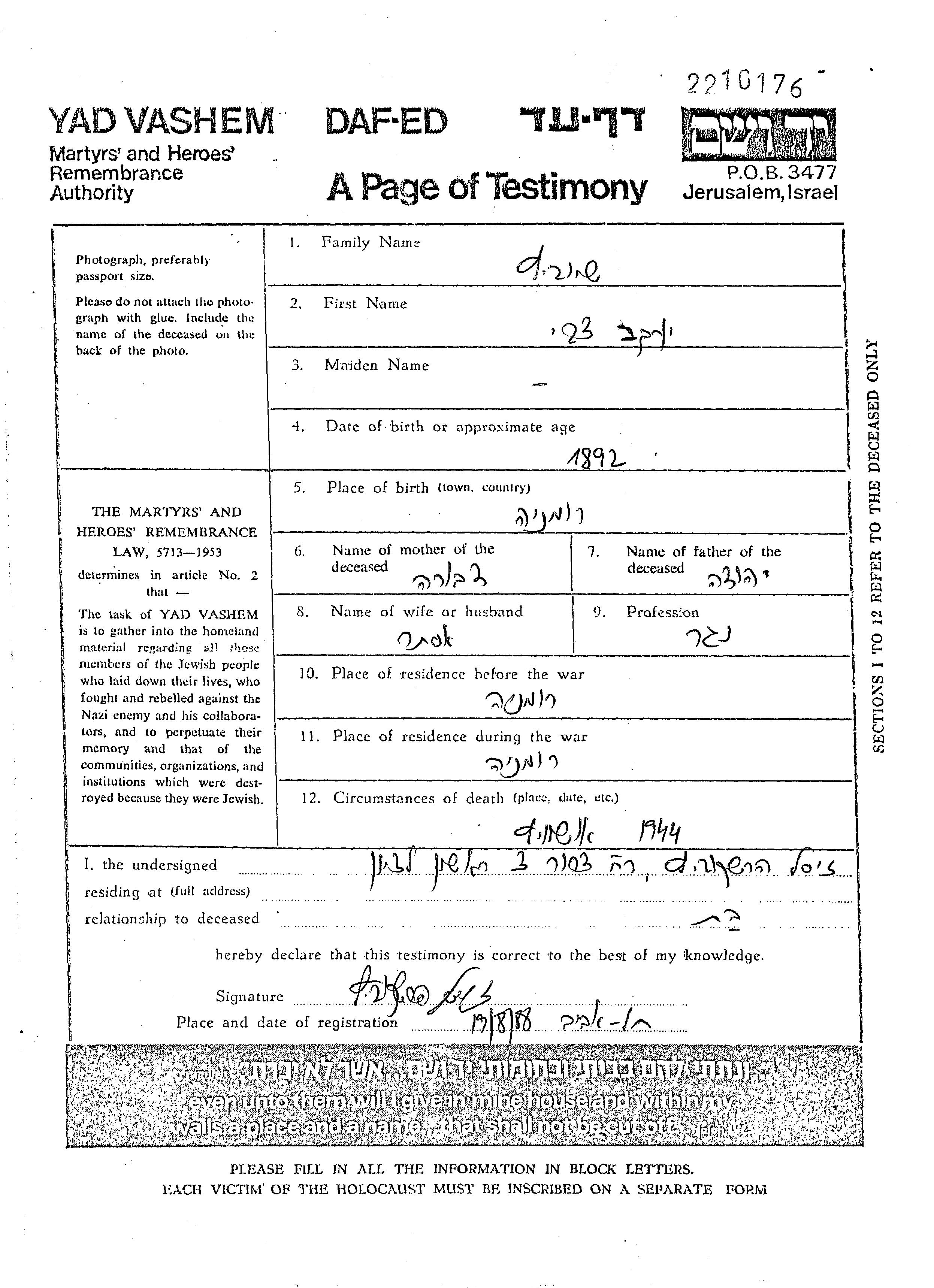Яд Вашем - Листы свидетельских показаний Мемориального фонда