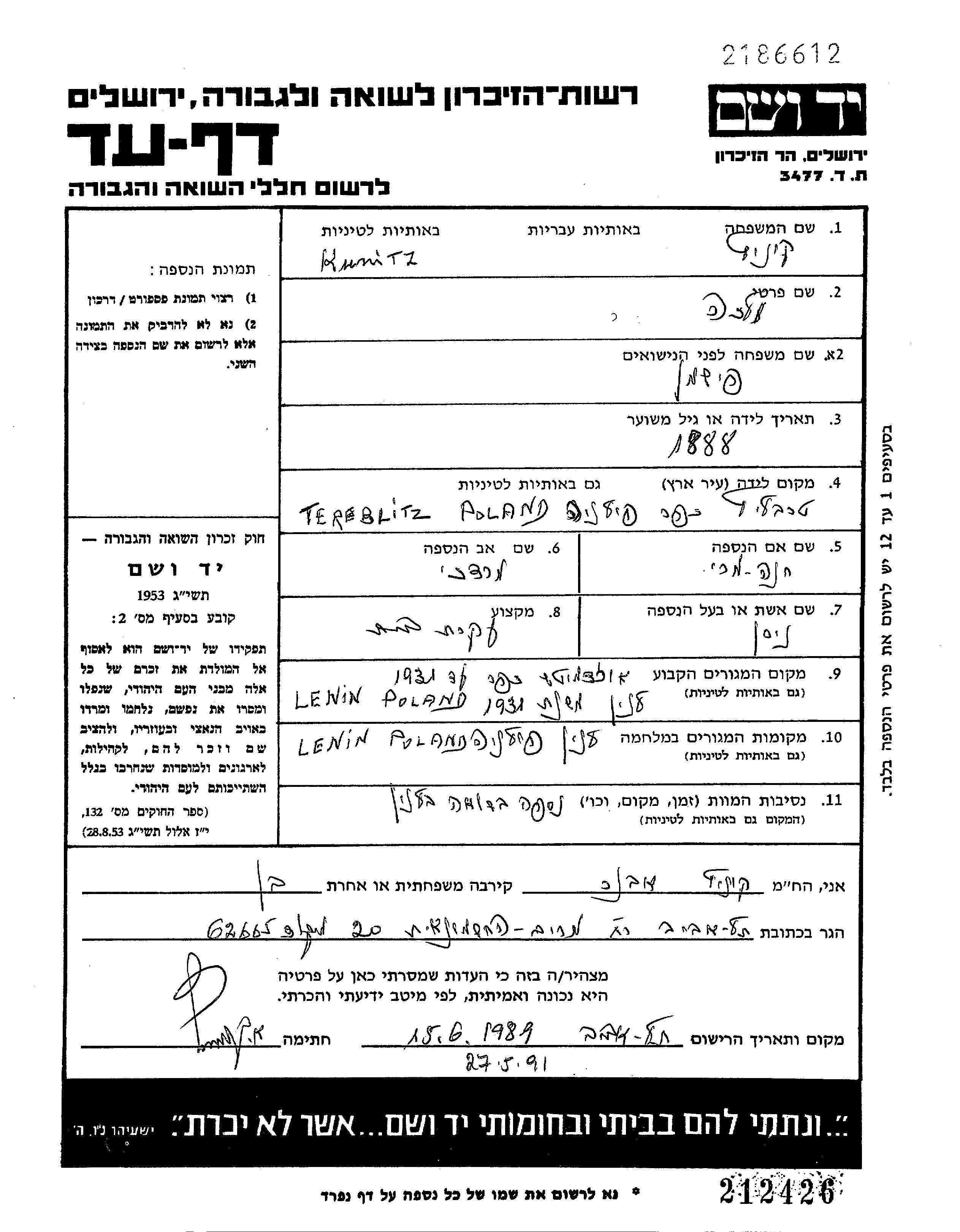 Яд Вашем - Листы свидетельских показаний Мемориального фонда
